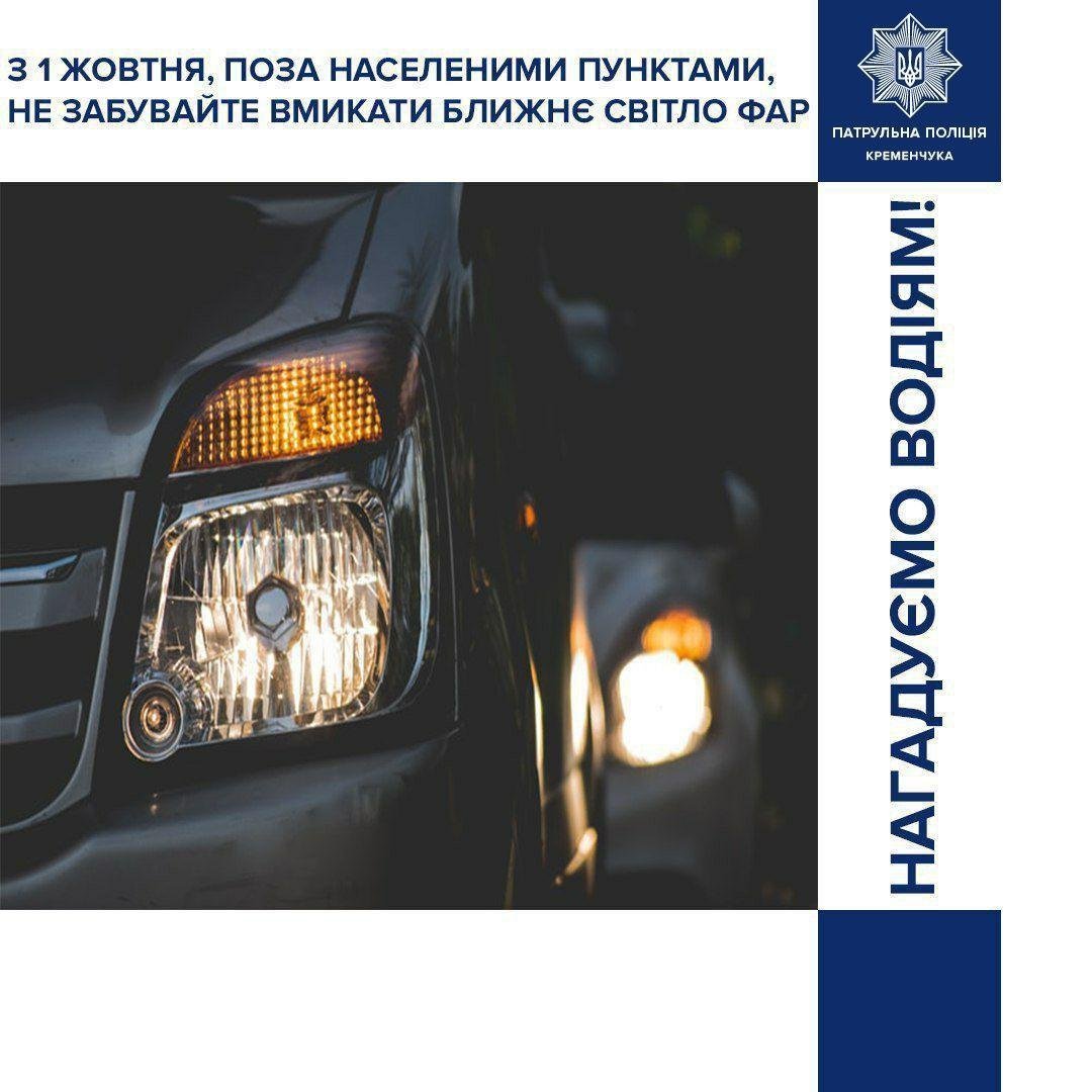 З 1 жовтня до 1 травня на всіх машинах поза населеними пунктами повинні бути ввімкнені денні ходові вогні. Якщо такої можливості немає, то має бути увімкнене ближнє світло фар. Така норма прописана у пункті 9.8 Правил дорожнього руху України.