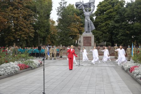 Біля пам'ятника пролунали залпи військового салюту, а присутні поклали квіти до підніжжя пам’ятника «Воїну визволителю».