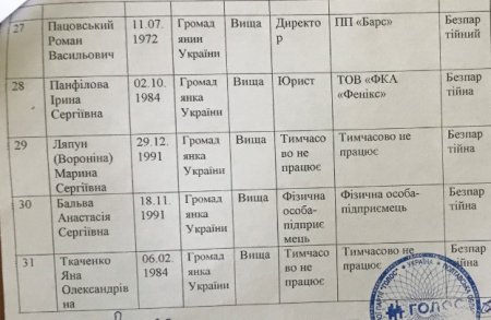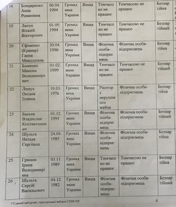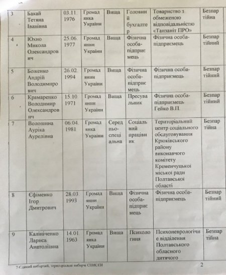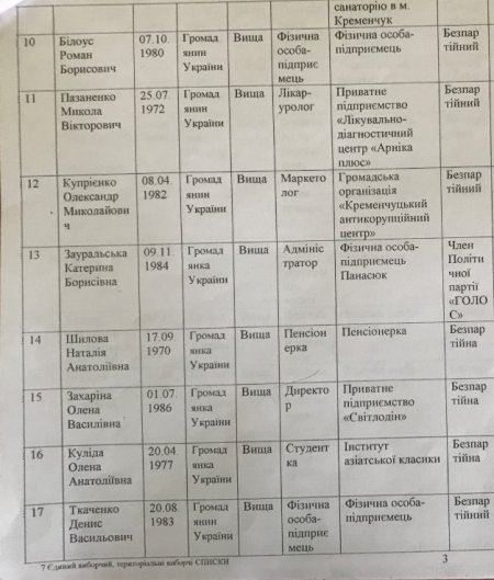 Список кандидатов в Кременчугский горсовет от партии «Голос»: