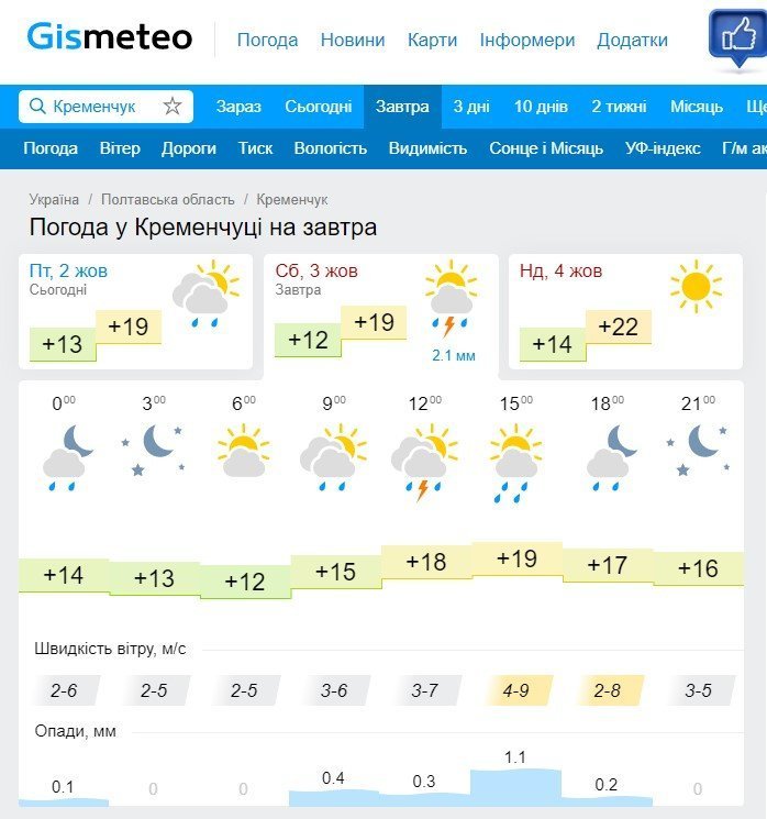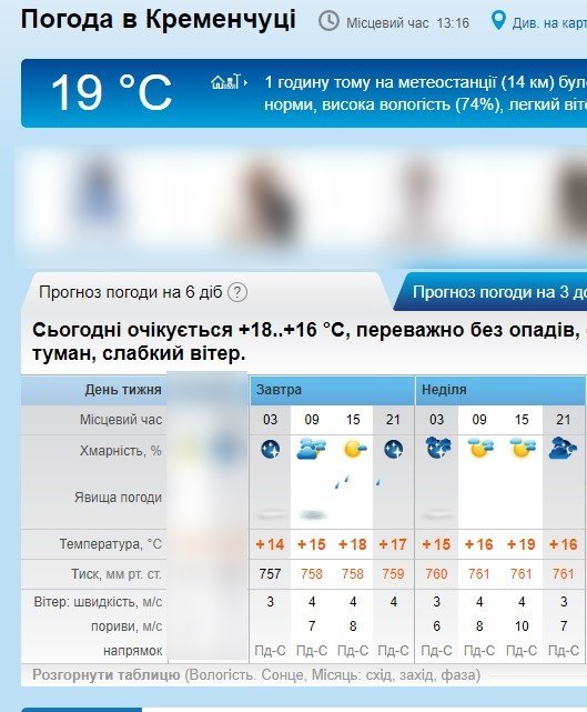 Погодний сайт rp5 також прогнозує дощ в другій половині суботи. Вранці у суботу можливий туман. У неділю без опадів та хмарно.