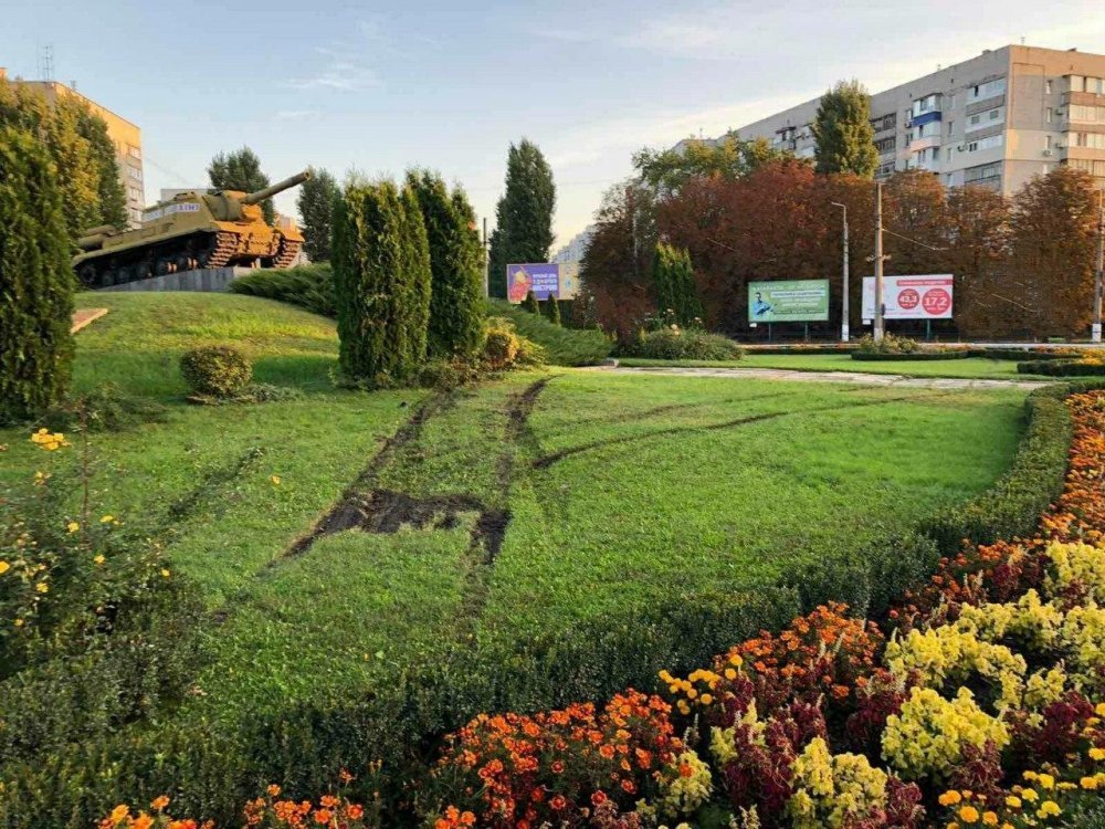 По клумбі Пивзаводівського кола проїхалися машиною – сліди від шин залишилися на траві.