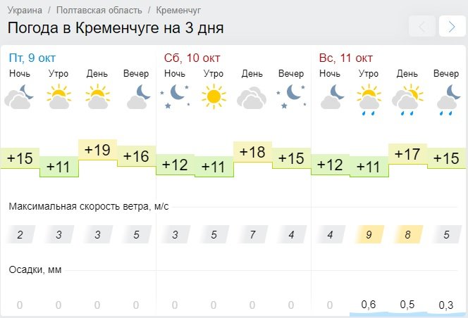 По данным Sinoptik, температура на уикенд не превысит +20°С: минимум составит +9°С, а максимум +18°С. Во второй половине дня в воскресенье, 11 октября, периодически будет пускаться мелкий дождь.
