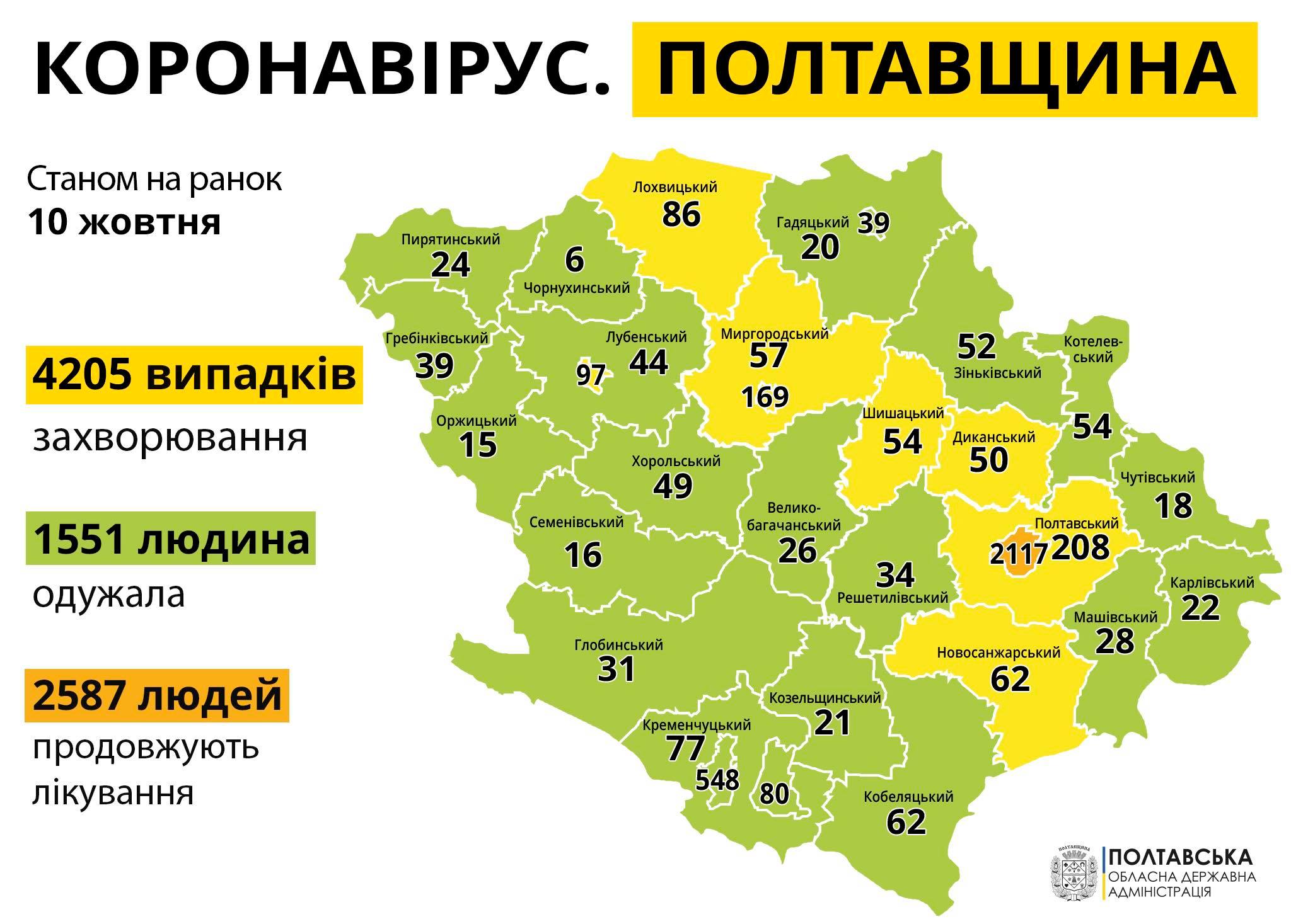 - Полтавський район – 208 (11 нових випадків),