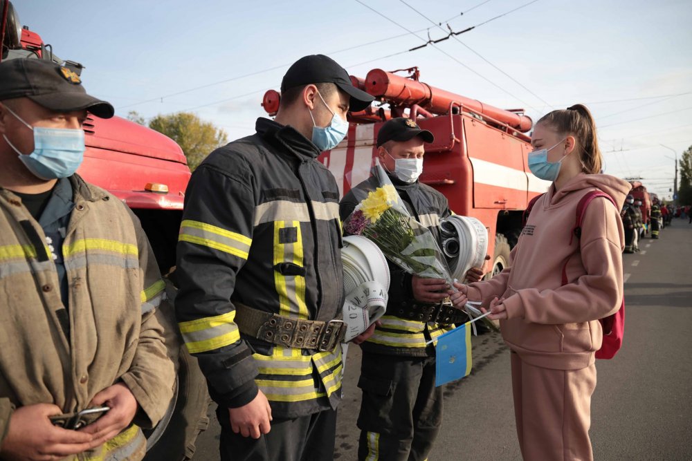 Квітами, оплесками та вигуками: «Дякуємо!» проводжали вогнеборців.