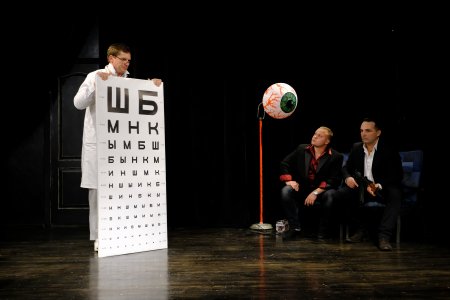 Говоря о комедии «Кароль» (в афише «МО» - кАроль»), Максим Воробьев отмечает, что она — о человеческой трусости. И с этим не поспоришь. К самой пьесе режиссер подошел вольно и несколько ее перекроил. Например, у Мрожека — дедушка, это, и правда, старик, а не матерый дед из криминального мира.