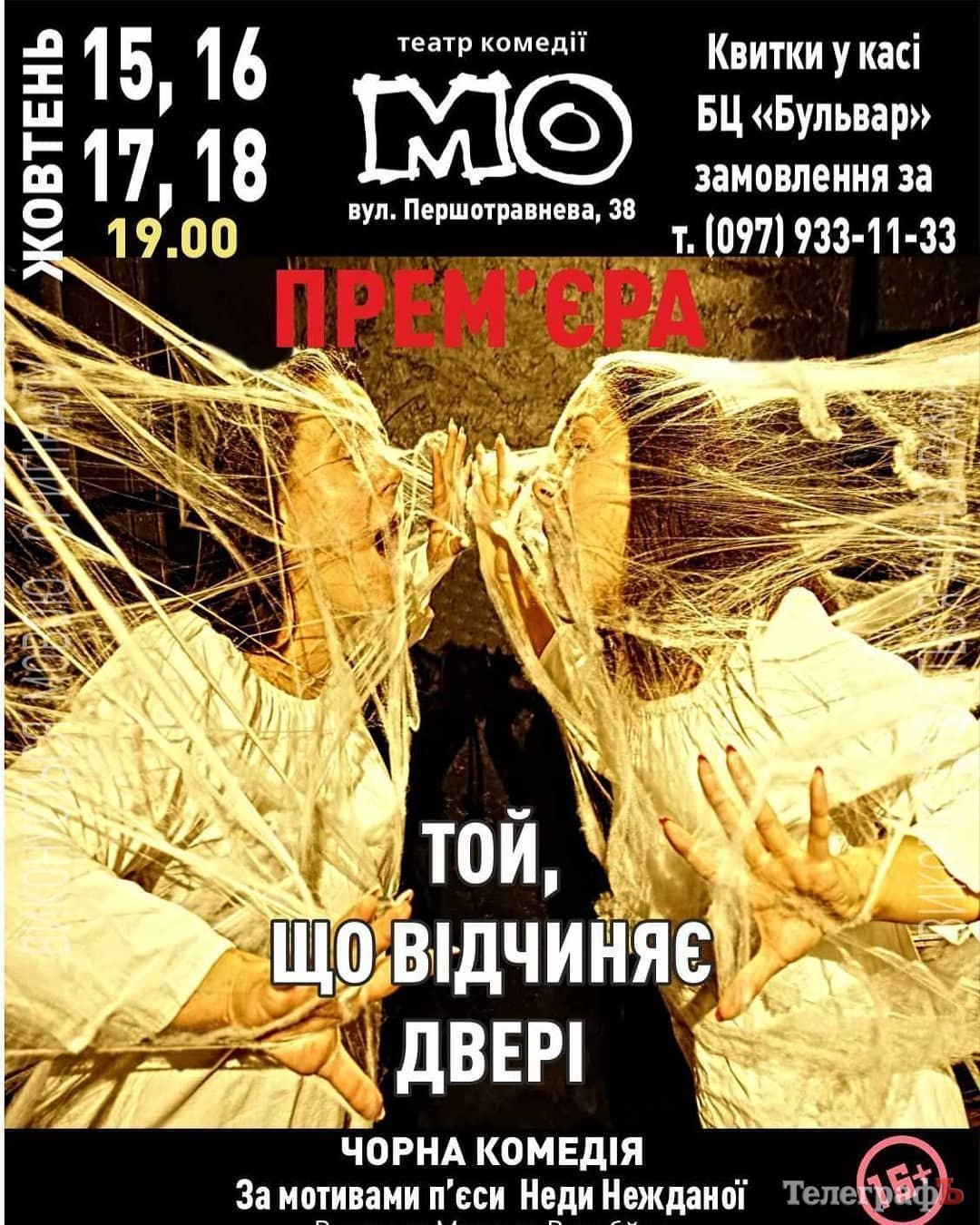 Те, кто не попал на премьеру «Кароля» – не огорчайтесь. Театр в свой юбилейный год припас еще одну премьеру — черную комедию современного автора Неды Нежданы «Той, що відчиняє дверіі». Показы — 15, 16, 17 и 18 октября, в 19.00. Спешите — количество мест ограничено.