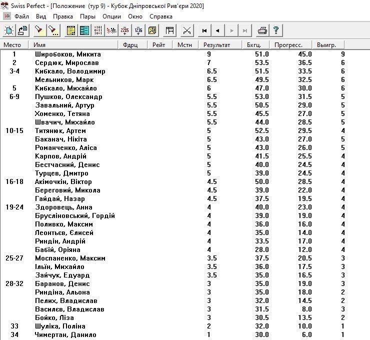 Переможцем турніру став кандидат у майстри спорту Микита Широбоков з Горішніх Плавнів. Друге та третє місце у загальному заліку посіли відповідно Мирослав Сердюк та Володимир Кибкало.