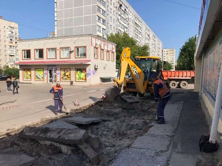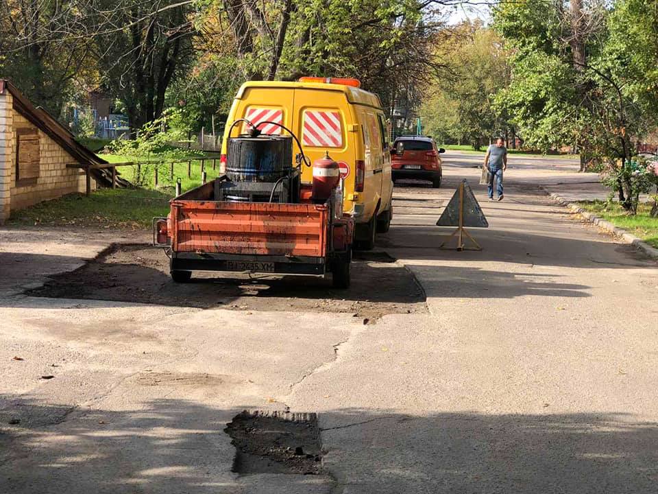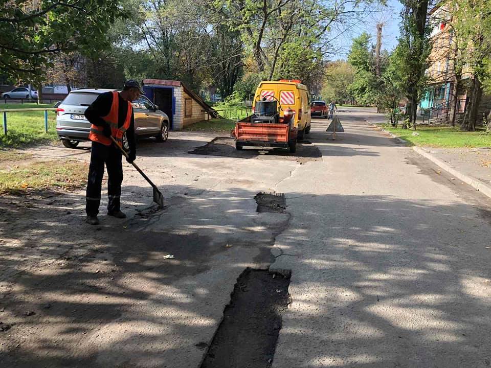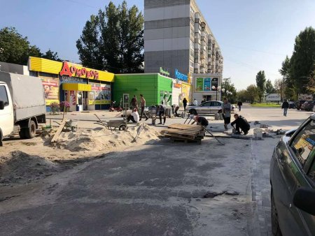 Також зараз ШРБУ спільно з соціально відповідальним бізнесом продовжує ремонтувати тротуар (з розширенням проїжджої частини для паркування автомобілів) на проспекті Лесі Українки, в районі зупинки транспорту «вул. Керченська». Підрядна організація разом зі Шляховим ремонтно-будівельним управлінням укладає там плитку з використанням технології безшовного мощення.