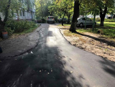 Тож комунальники виконують ямковий ремонт внутрішньоквартальних проходів та проїздів біля будинків №75, 77, 79-А по вулиці Республіканській. Вони фрезою знімають пошкоджений верхній шар асфальтобетонного покриття та укладають новий асфальт.
