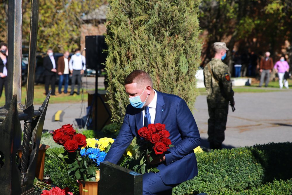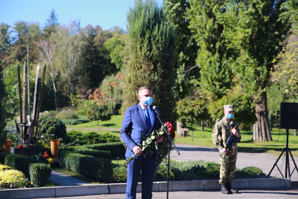 Також хвилиною мовчання вшанували всіх захисників України. На честь подвигу українських патріотів пролунали залпи військового салюту. Живі квіти були покладені до підніжжя пам’ятного знаку «Героям АТО».