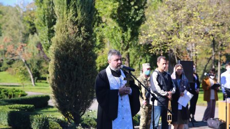 У парку «Ювілейний» біля пам’ятного знаку «Героям АТО» привітали захисників, а також провели панахиду за загиблими військовими. Привітав присутніх міський голова Кременчука Віталій Малецький та командир військової частини А-1546 полковник Олександр Келембет, голова громадської організації «Обєднання учасників та ветеранів АТО Кременчука» Володимир Махоркін та сержант-розвідник полку «Азов» Олег Штефан.