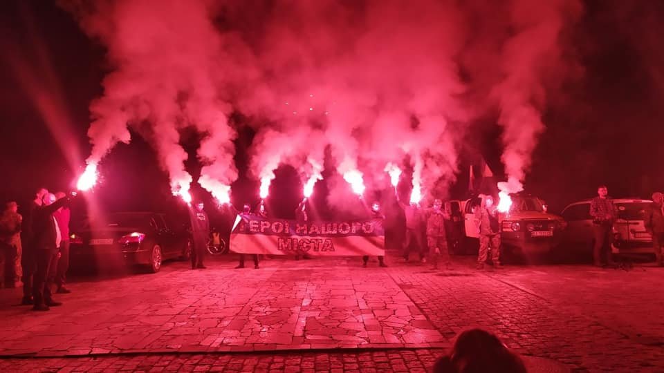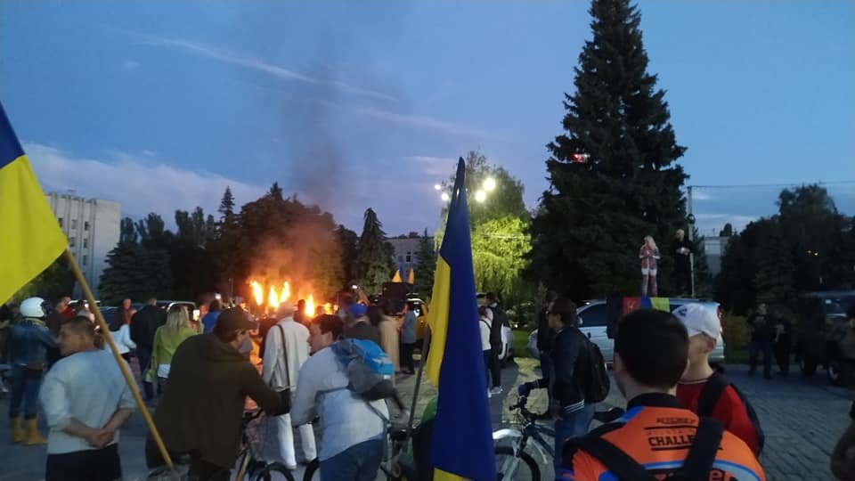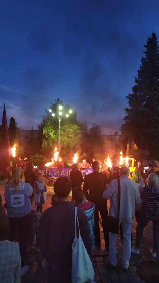 На центральній площі міста кременчужани виконали молитву націоналіста, запалили смолоскипи та факели.