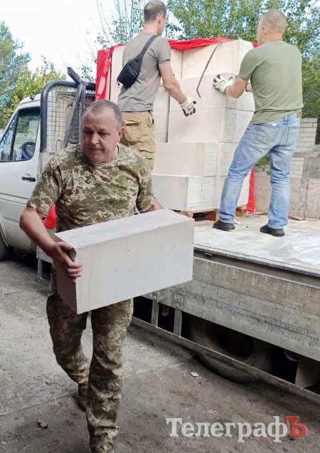 Кременчужани підтримкою, будівельними матеріалами та смаколиками для діток привітали бійця Василя Онищенка. Для розширення будинку Василю привезли газоблоки та клеючу суміш.