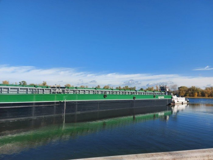 29 сентября состоялся торжественный спуск на воду баржи, которая имеет длину 128 метров и является самой крупной, построенной в истории независимой Украины. Ширина несамоходного судна – 16,3 м, осадка – 3,8 м. Надводный габарит пустой баржи – 6,7 м, водоизмещение в пресной воде 6000 т, в морской воде на осадку 3,8 м – 7418 т. Судно имеет два трюма, что позволяет одновременно перевозить два различных груза.