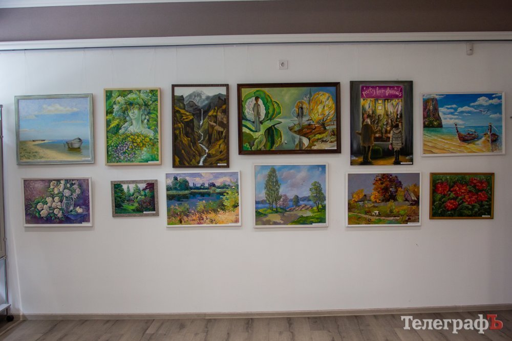 У виставці взяли участь 65 художників з Кременчука, Горішніх Плавнів, Світловодська, Кривого Рогу – як професійні автори з прекрасною технікою, так і аматори (для деяких з них це навіть дебют). У великій залі кременчужани можуть побачити 170 творів, серед яких: живопис, пастелі, колажі, гравюри, аерографія, кераміка, авторські поштівки, ком’ютерна графіка, картини з текстилю і паперу, навіть кісток риби.