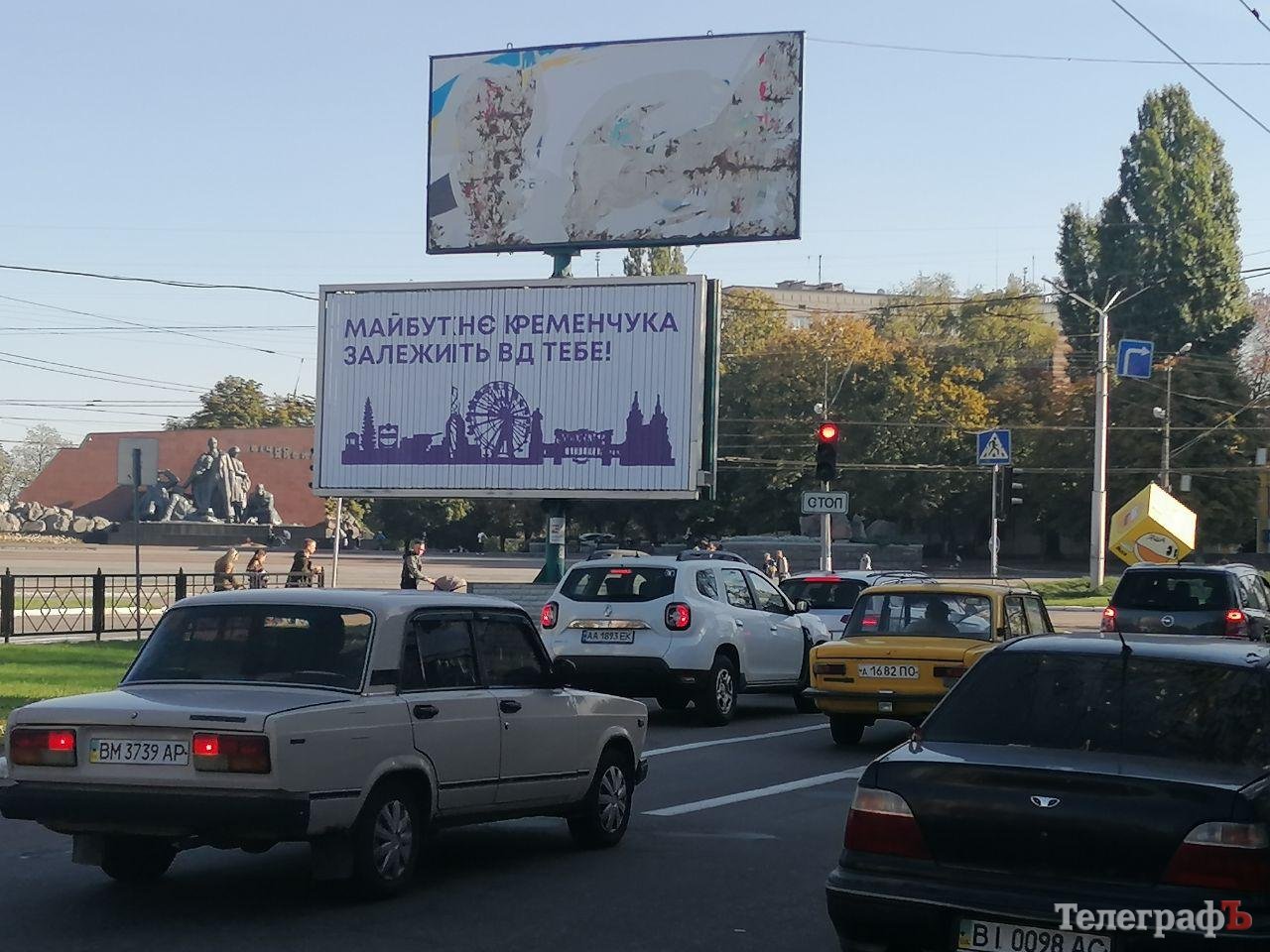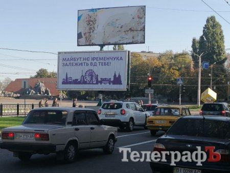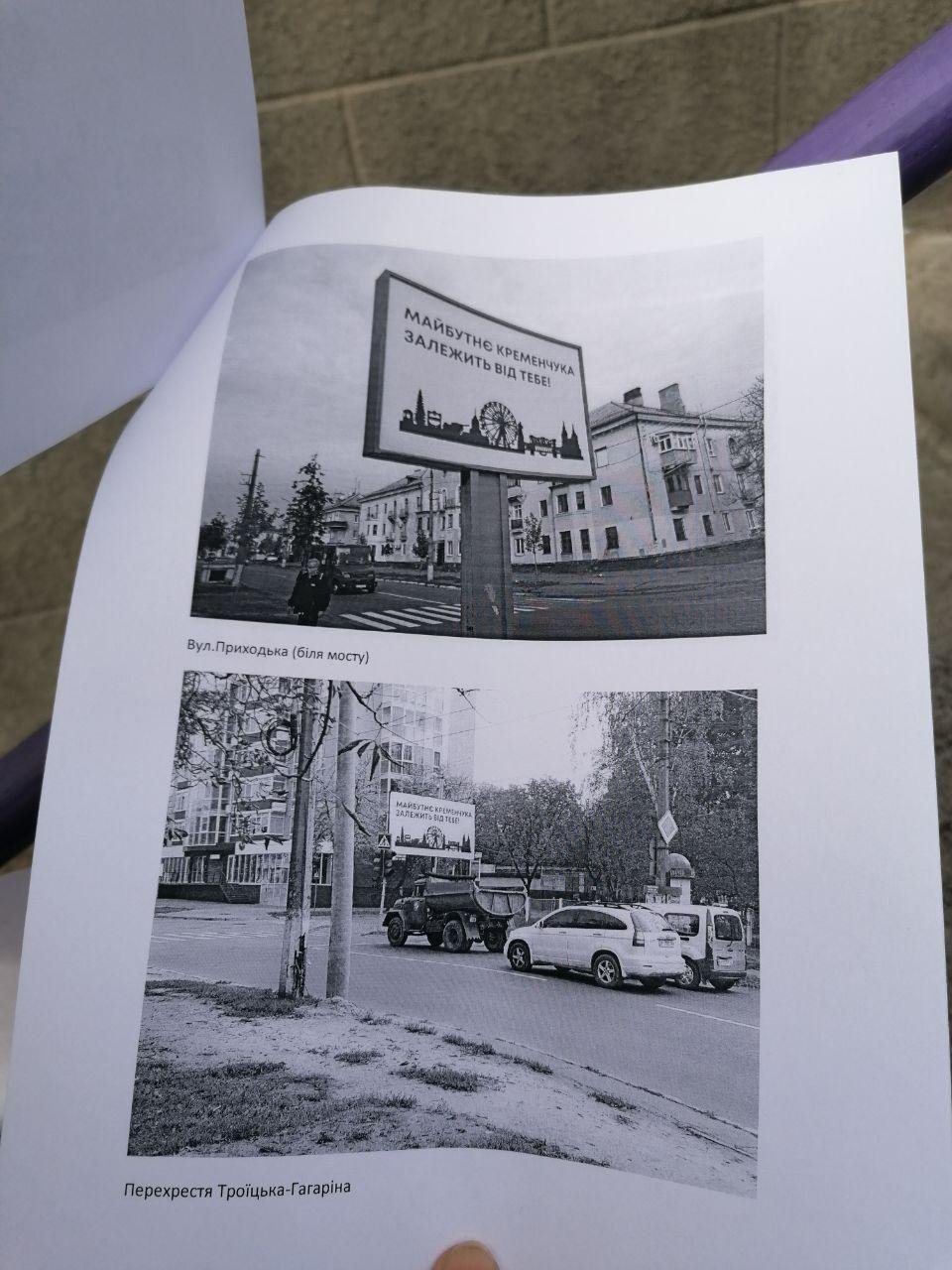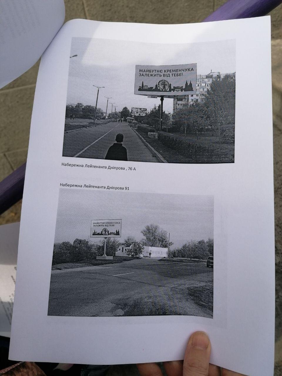 У місті напередодні виборів на бордах, де розміщувалася реклама партії «За майбутнє», замінили на інші плакати «Майбутнє Кременчука залежить від тебе». Рекламу замаскували під соціальну — на плакатах немає позначок, що це агітація, даних про замовника. Проте в оформленні використаний добре знайомий кременчужанам фіолетовий колір та символіка, які експлуатувала під час виборчої кампанії партія «За майбутнє». Партія позиціонувала себе як «партія Малецького» (чинного мера Кременчука і кандидата на цю посаду). Він офіційно є керівником виборчого штабу «За майбутнє» у Кременчуці.