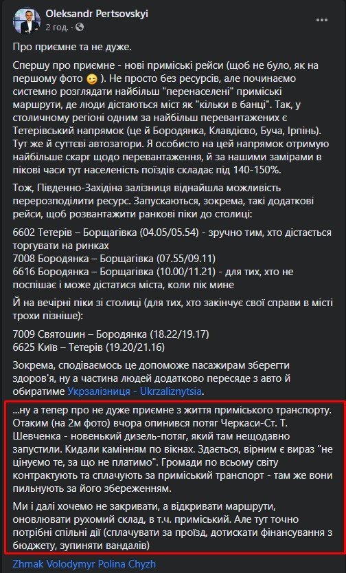 Напомним, что дизель-поезд ДПКр-3 с декабря 2019 года обслуживал маршрут Киев – аэропорт Борисполь. С 23 сентября текущего года он был переведен на линию Черкассы-Смела.