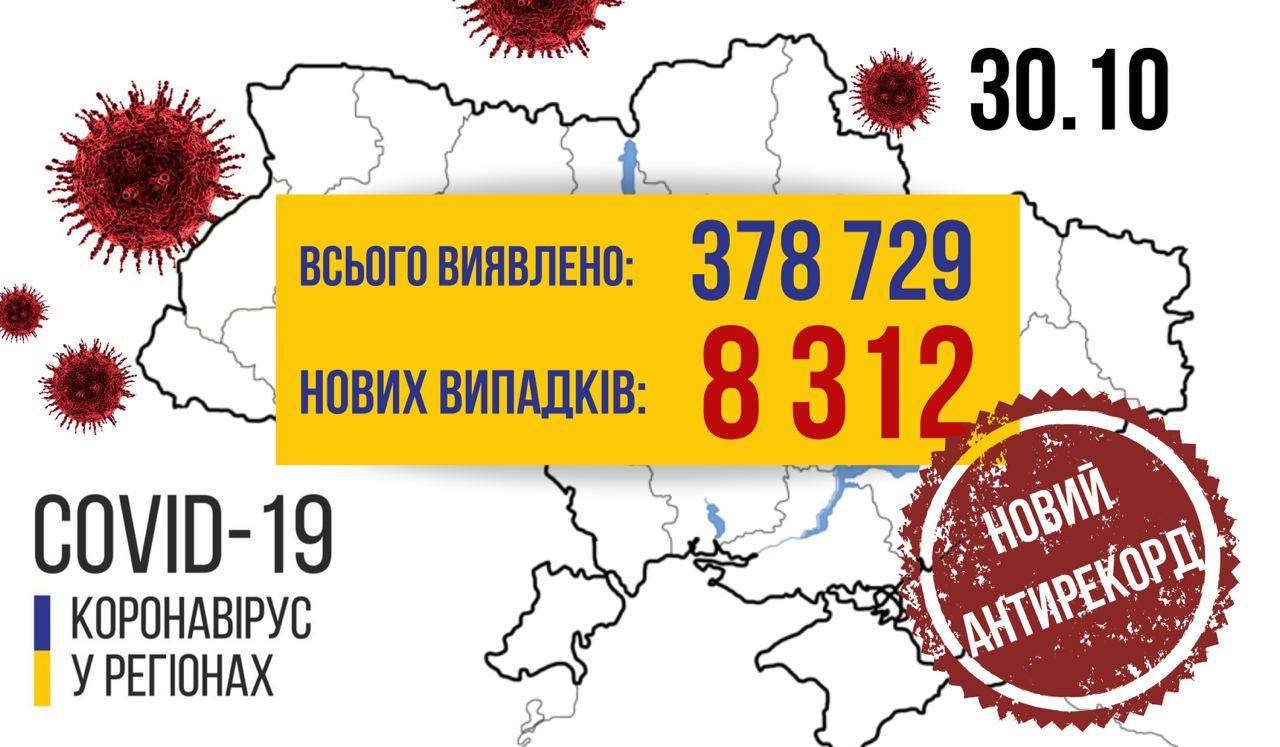 Станом на 30 жовтня в країні налічують 378 729 випадків захворювання на COVID-19. Загалом одужало 155 026 (+3 394) українців. Померло — 7 041 (+173).