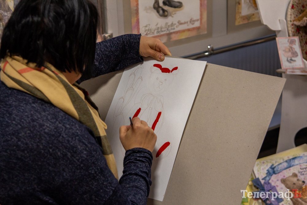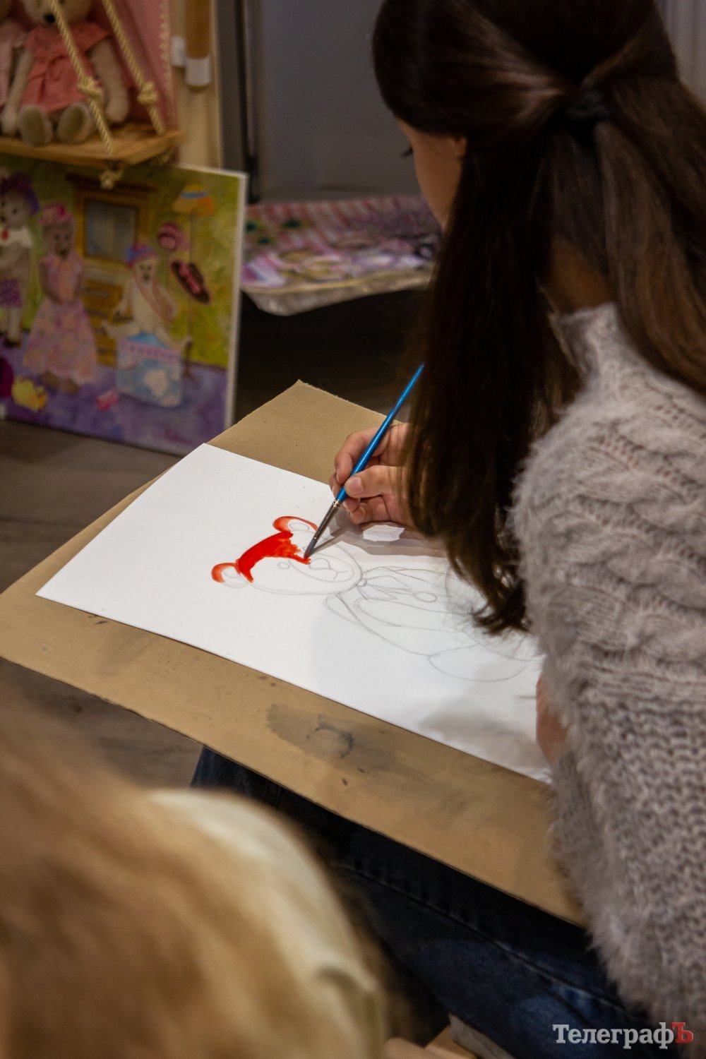 Тепер настала черга нових охочих приміряти на себе роль художника. На майстер-клас прийшло близько десятка людей, в основному – діти. Їм Оксана Бойко наочно показувала, як малювати чудернацьких перчиків-ведмедиків.