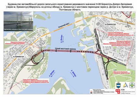За три роки новий міст з’єднає береги Кременчука, що дозволить розвантажити аварійний Крюківський міст, повідомляє пресслужба Укравтодору.