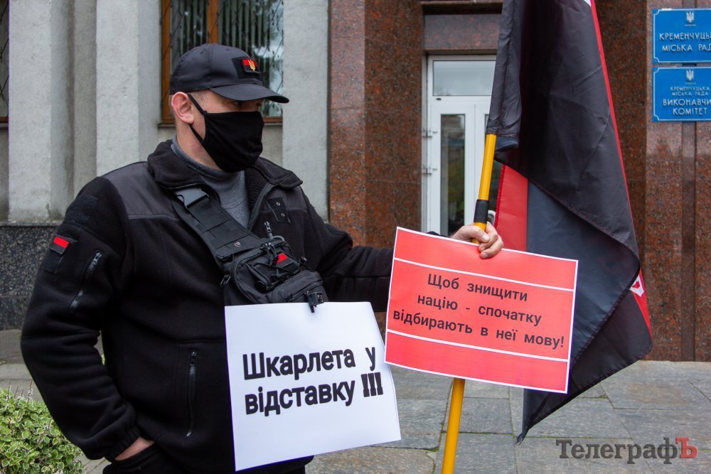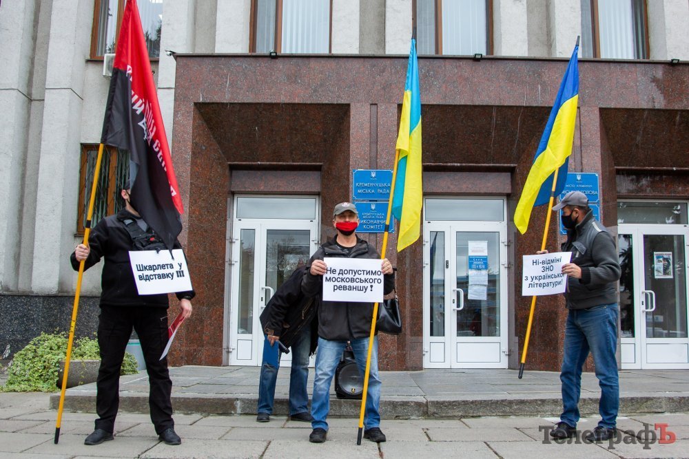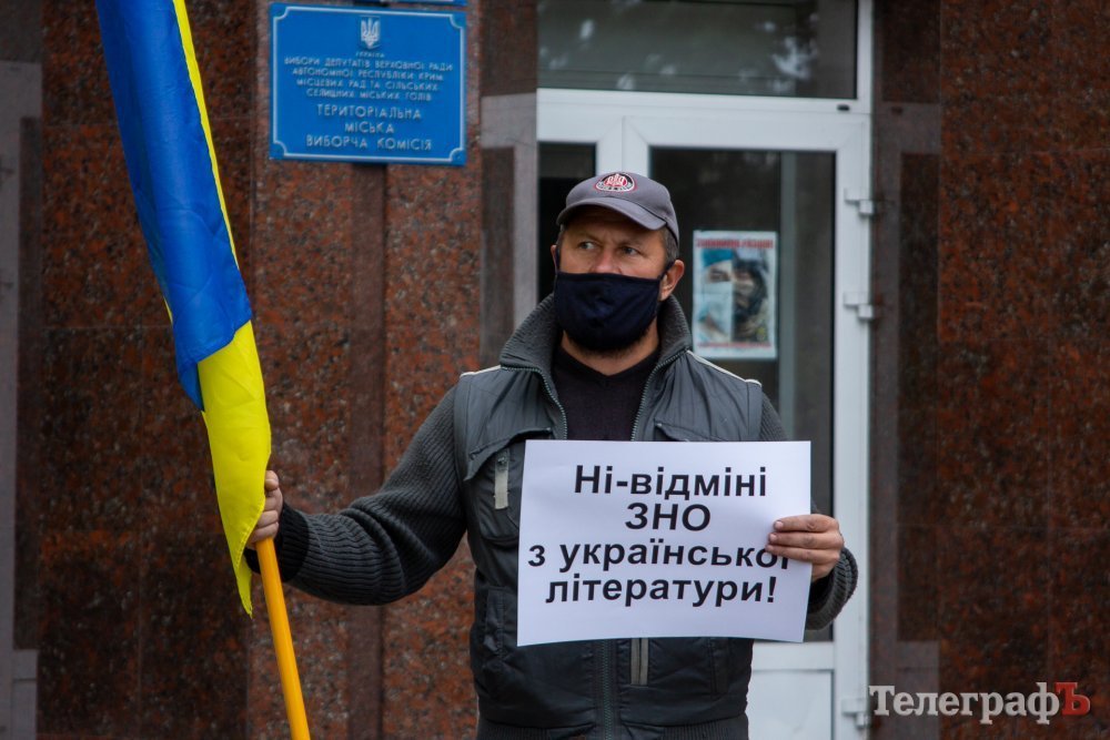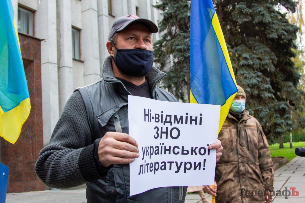 9 листопада біля входу до Кременчуцької міської ради мітингували проти скасування обов’язкового ЗНО з української літератури. Т побував на акції.