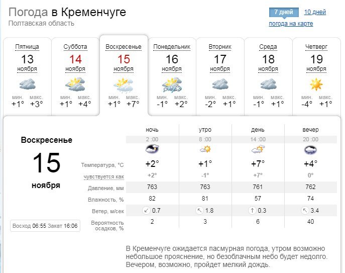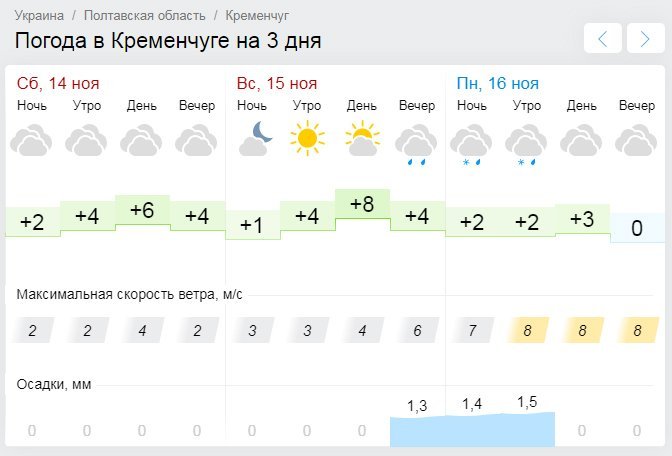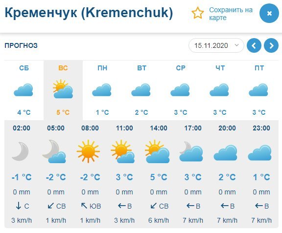 А вот прогноз Ventusky отличается: этот погодный портал не сообщает об осадках в ближайшие дни, зато предупреждает о возможных заморозках утром в воскресенье, 15 ноября, – температура может упасть до -2°С. В целом температурный режим на уикенд составит от минимальных +1°С до максимальных +5°С.