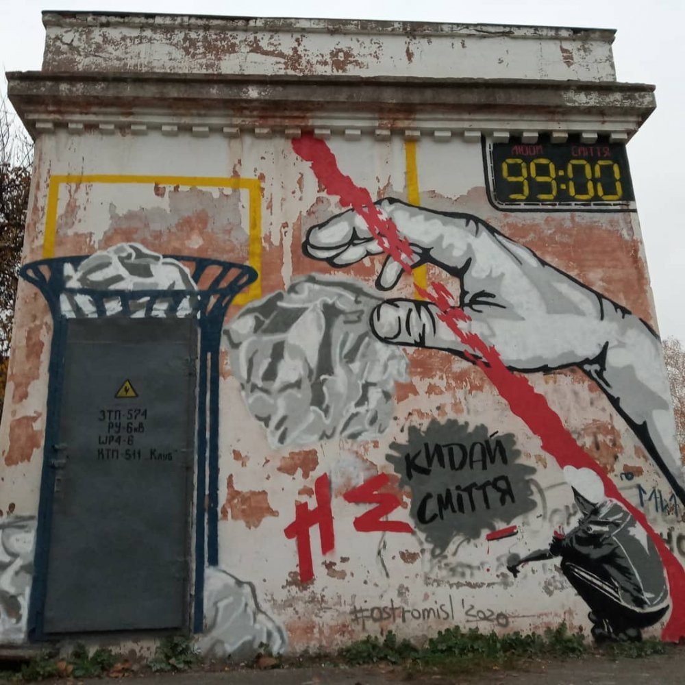 У Крюкові з’явився еко-мурал, який закликає кременчужан не смітити. Арт-об’єкт створили у суботу, 14 листопада, за допомогою трафаретів.