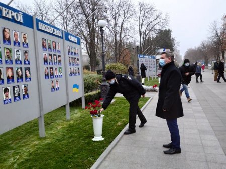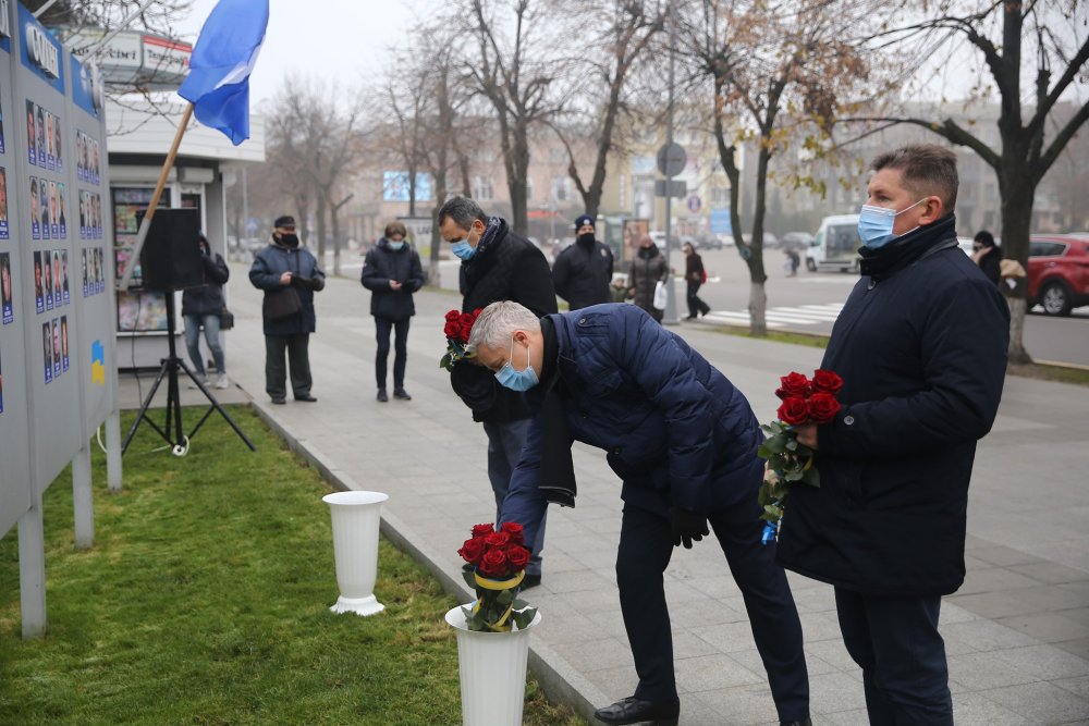 Представники міської влади, громадських організацій, учасники АТО, правоохоронці, військовослужбовці, кременчужани хвилиною мовчання вшанували загиблих героїв, які віддали своє життя, відстоюючи демократичні цінності, право України бути вільною та незалежною, йти своїм шляхом. У пам’ять про них учасники заходу поклали квіти до пам’ятного знаку Героїв Небесної Сотні.
