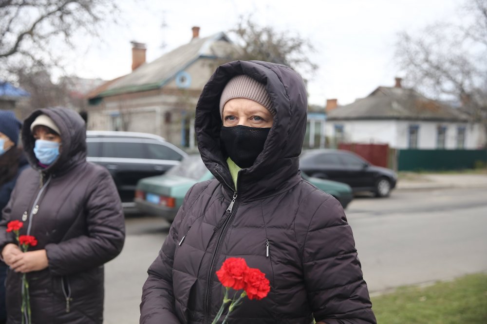 До підніжжя знаку «Жертвам голодомору» на знак пам’яті за невинно загубленими душами наших земляків, які загинули від голоду, поклали оберемки колосся пшениці та живі квіти.