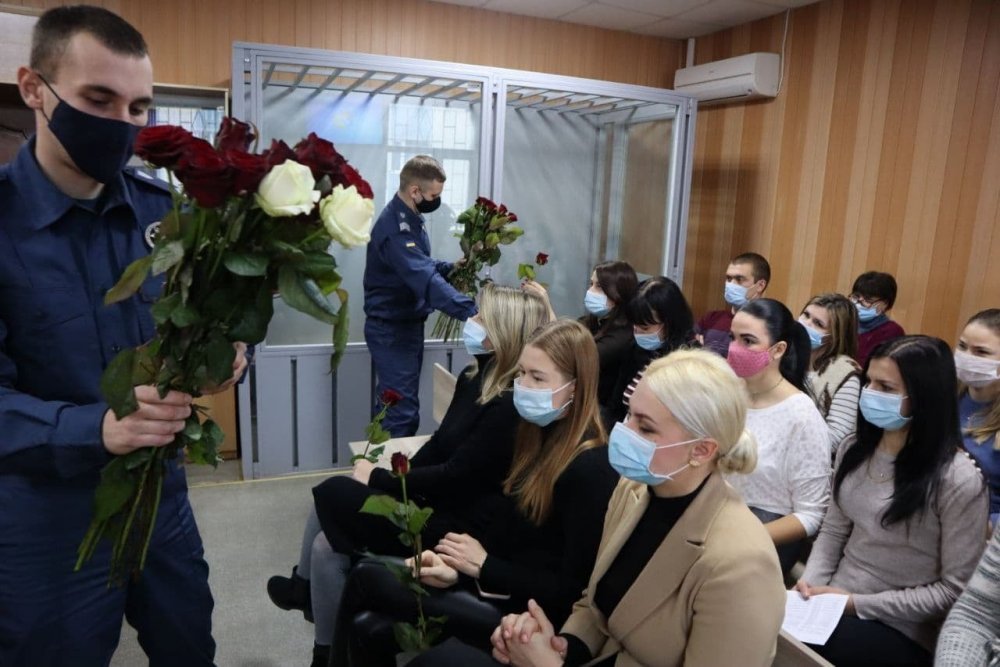 Представниці прекрасної статі традиційно отримали квіти від судових охоронців.