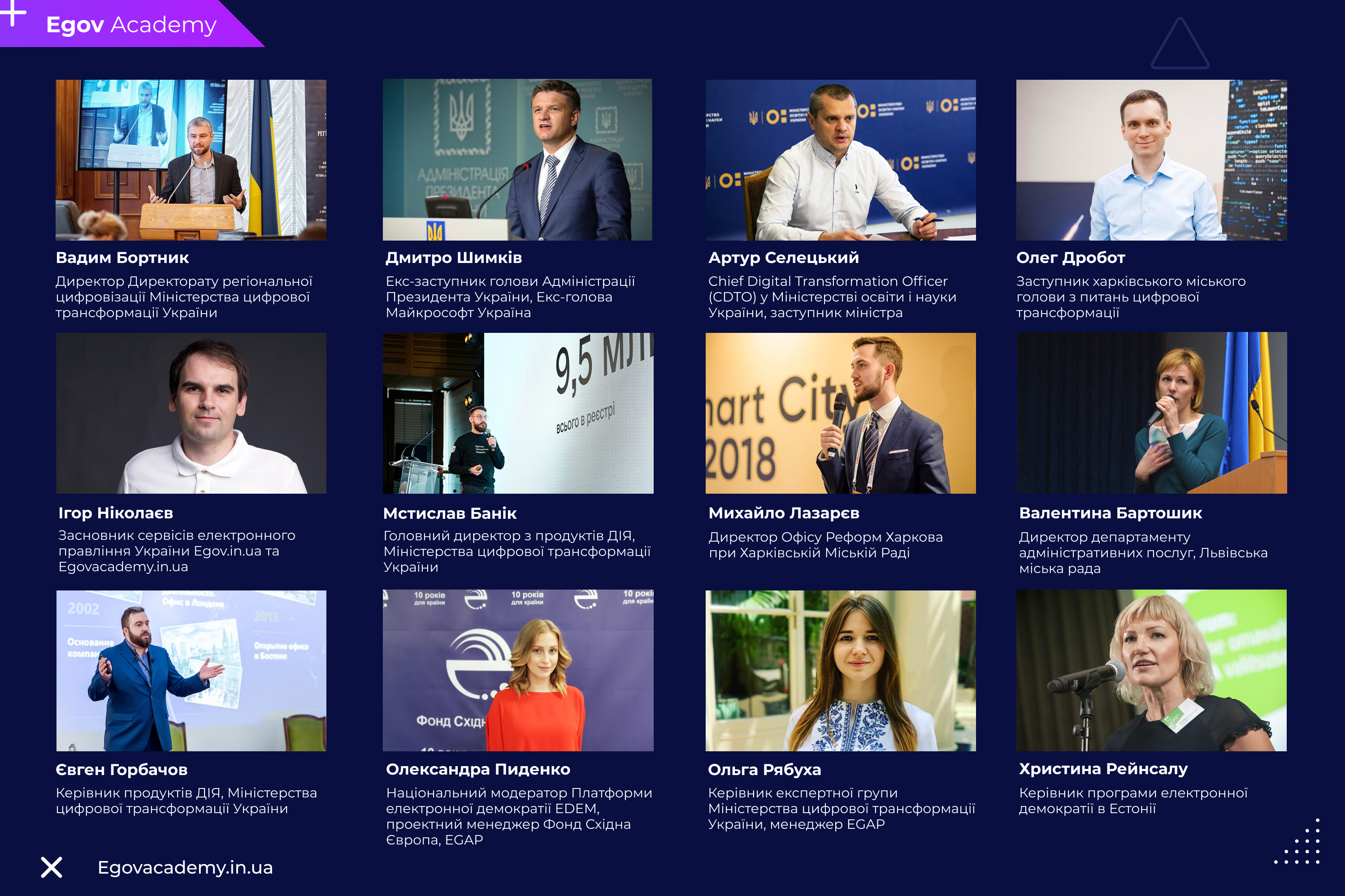Найближчий вебінар відбудеться 20 січня о 19.00 з Вадимом Бортником, директором Директорату регіональної цифровізації Міністерства цифрової трансформації України. Наступними спікерами стануть Дмитро Шимків, екс-заступник голови Адміністрації Президента і екс-голова Microsoft Ukraine, а також Артур Селецький, CDTO Міністерства освіти і науки України. Для того, щоб взяти участь в вебінарах, потрібно зареєструватися на сайті Egovacademy.in.ua.