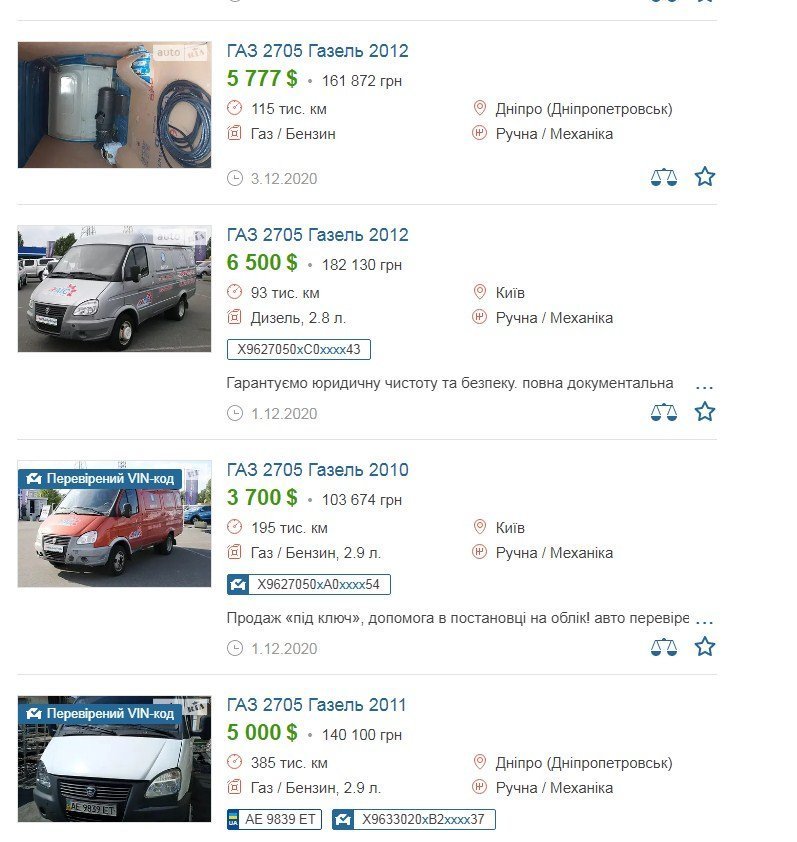 Проте ціна на вживані авто моделі ГАЗ 2705 (не раніше 2009 року випуску), яку хотів замовник, на сайті продаж auto.ria пропонують набагато дешевше. А за ту суму, за яку придбали «Газель», можна купити більш свіже авто: 2012 року випуску, і навіть новіше.