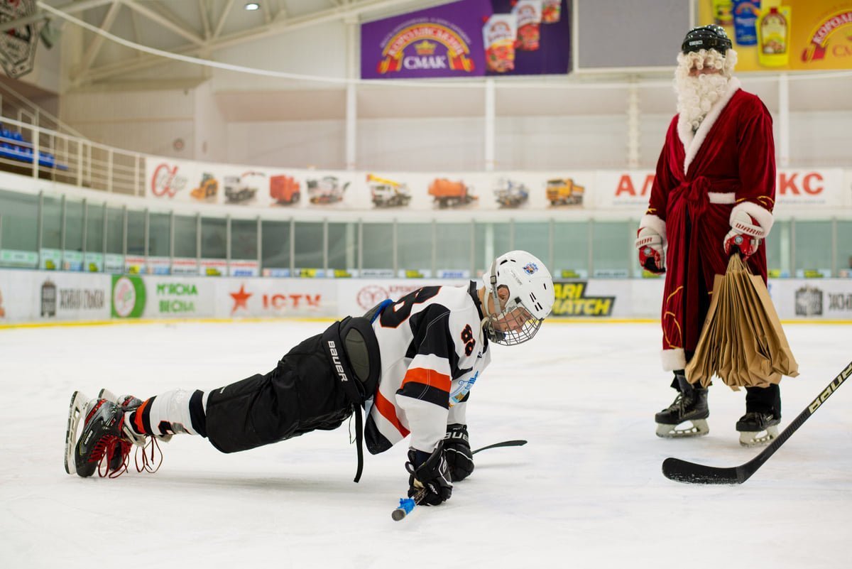 Чарівник випробовував хлопців на міцність, й юні хокеїсти мали забити за допомогою величезної ключки або шайби. Весело проведений час у колі друзів і за спортивними завданнями закінчився спільним фото та подарунками.