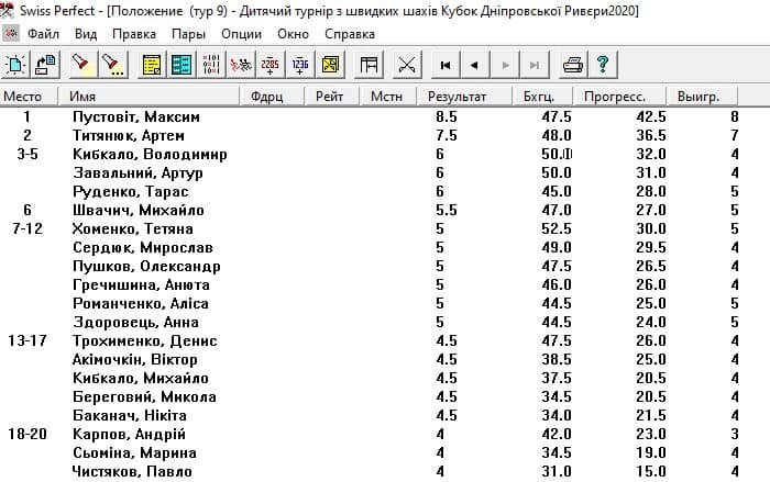 Переможцем змагань з результатом 8.5 з 9 очок став гість з Черкас Максим Пустовіт, показав блискучий результат у свої 10 років.