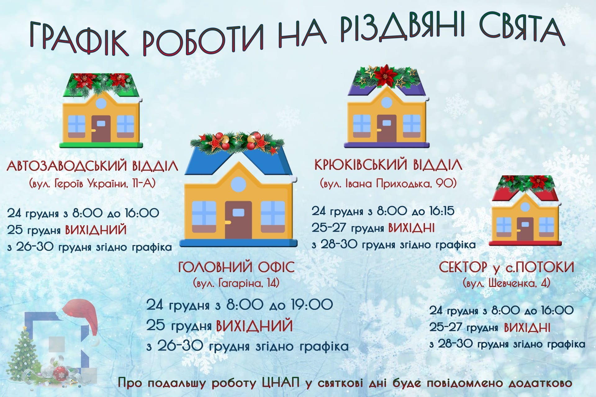 Про подальшу роботу ЦНАП у святкові дні буде повідомлено додатково.