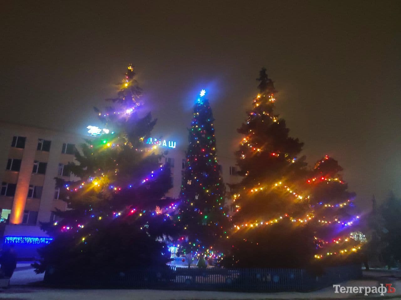 Вчора, 24 грудня, засяяла головна ялинка правобережжя Кременчука біля прохідної Крюківського вагонобудівного заводу (архівне фото зверху). Відкривали ялинку тихо та з дотриманням карантинних обмежень.