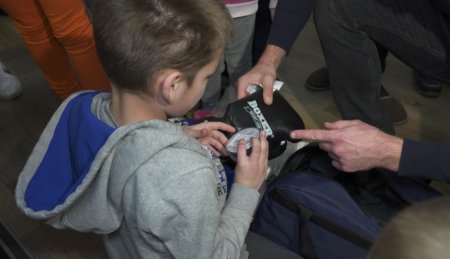 Діти із задоволенням обіймаються та розповідають про свої захоплення і досягнення. За спеціальний приз – бинти від чемпіона, підтягувалися не тільки хлопці, а й дівчинка Ніколь. У підсумку саме їй хлопці подарували бинти за сміливість.