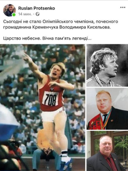 Сьогодні, 7 січня, пішов з життя почесний кременчужанин, Олімпійський чемпіон Володимир Кисельов. Про це на своїй сторінці у Фейсбук повідомив віцемер Руслан Проценко.