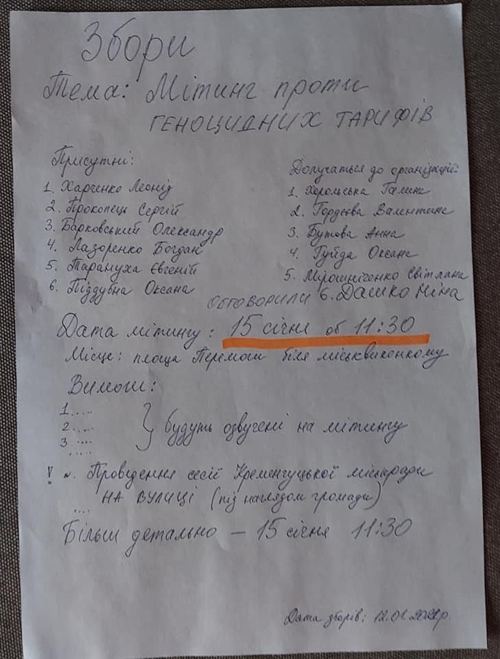 «Об’єдналися організувати тарифний мітинг (визначилися з датою).