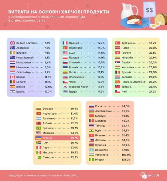 При цьому в рейтингу співвідношення цін до зарплат – Україна перебуває на 40 місці з 56.