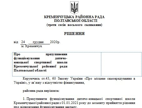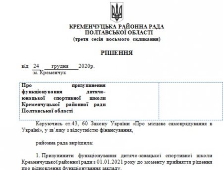Депутати Кременчуцької районної ради на останній сесії призупинили фінансування спортивної школи та будинку дитячої та юнацької творчості з 1 січня цього року.