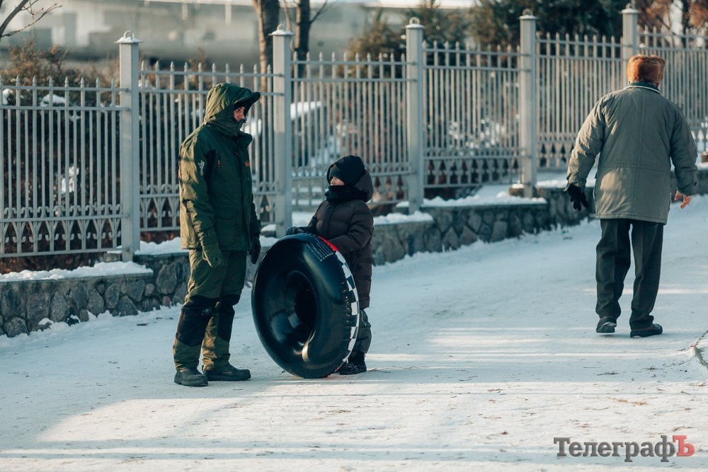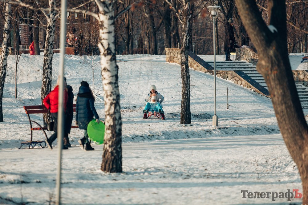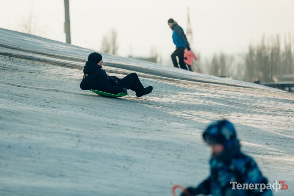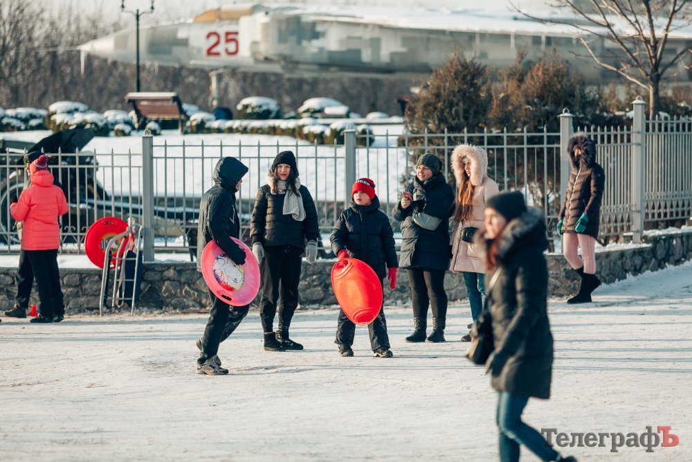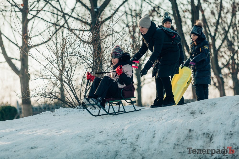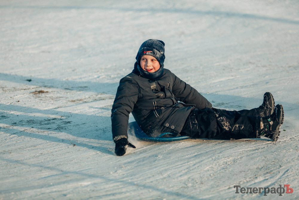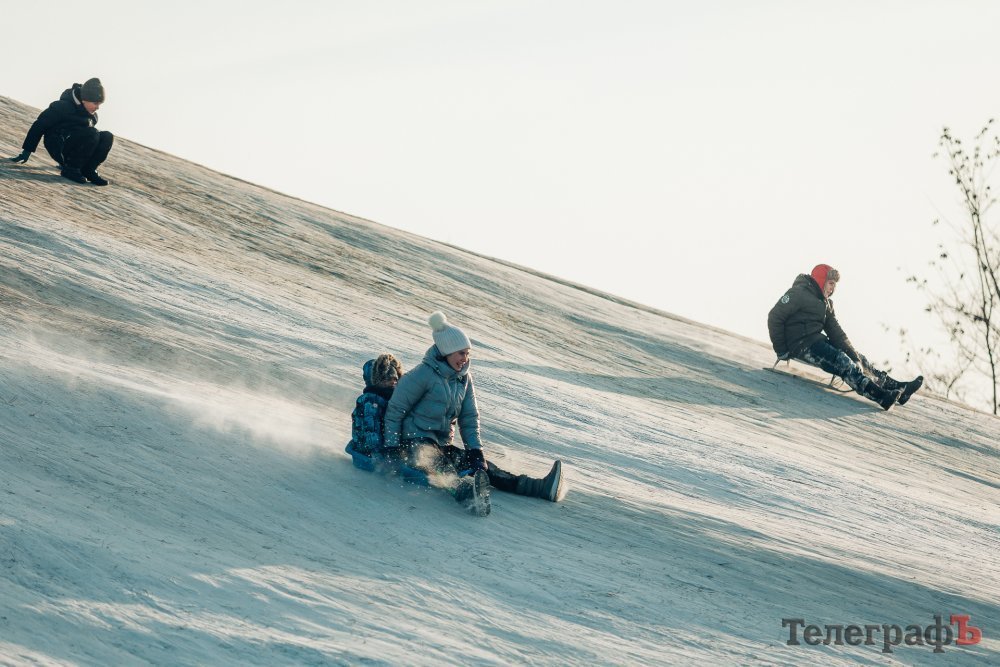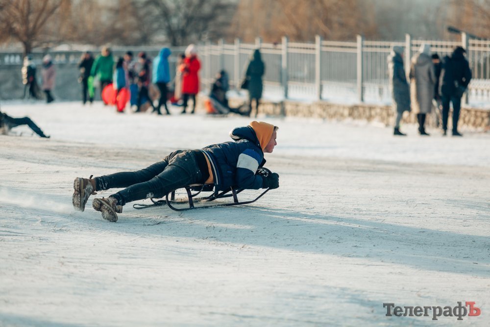 Таких морозів у Кременчуці давно не було. На вулиці якраз випала достатня кількість снігу, і температура поки радує позначками нижче нуля. Погода дозволила дітлахам та дорослим досхочу покататися з гірок. В хід йшли санчата, пакети, надувні «бублики»…
