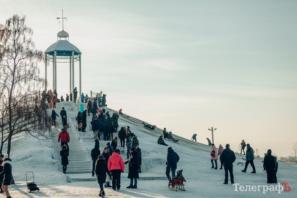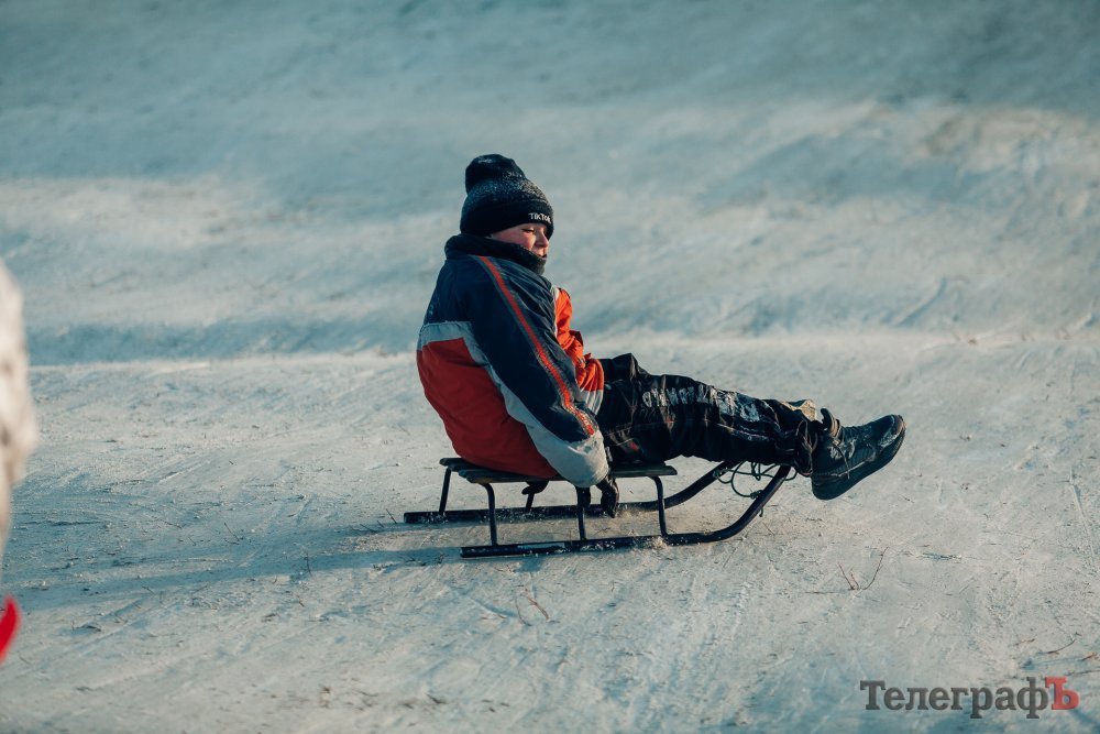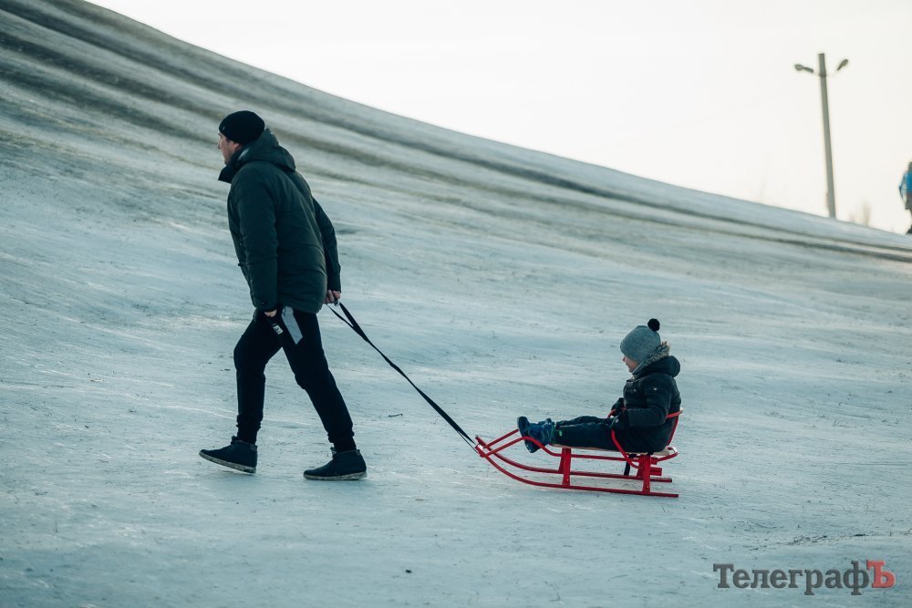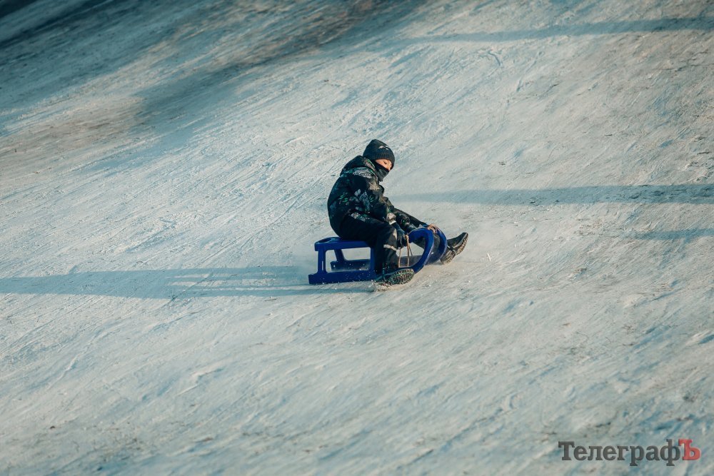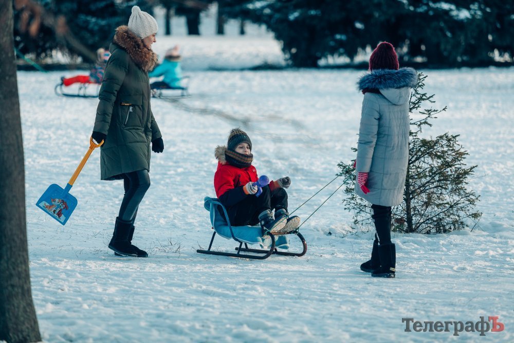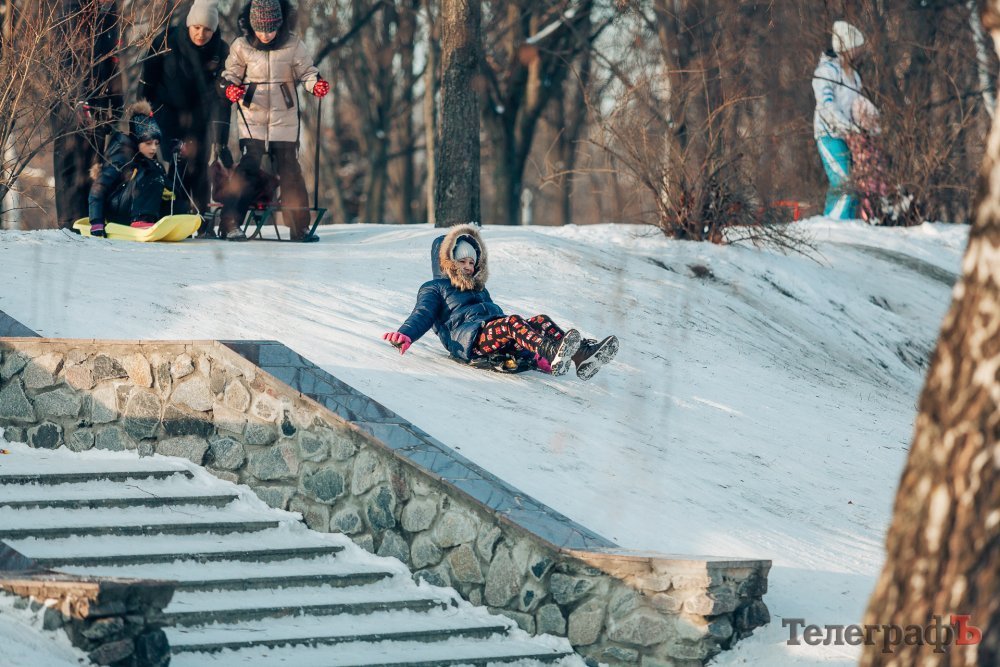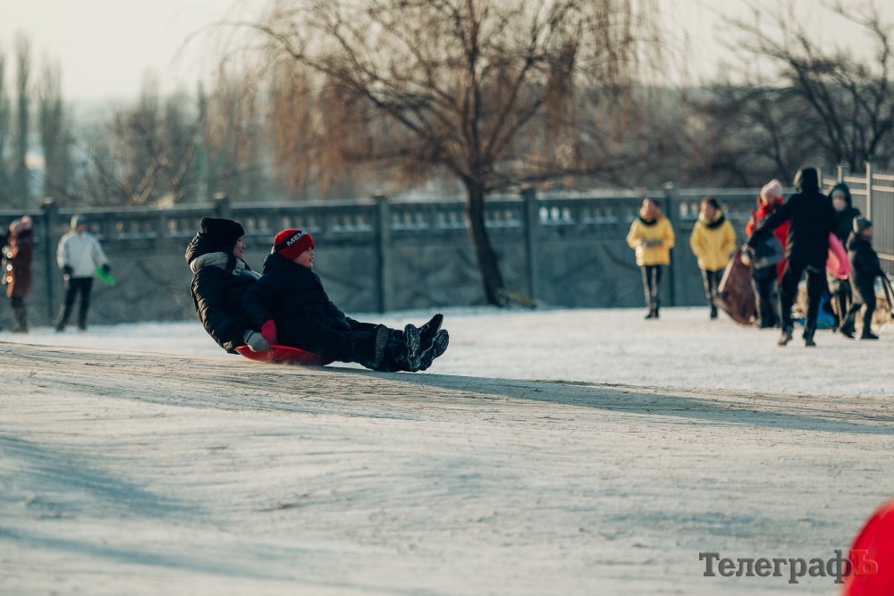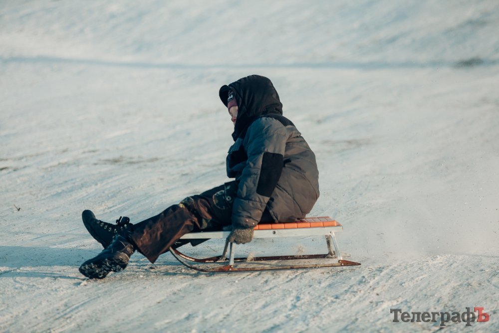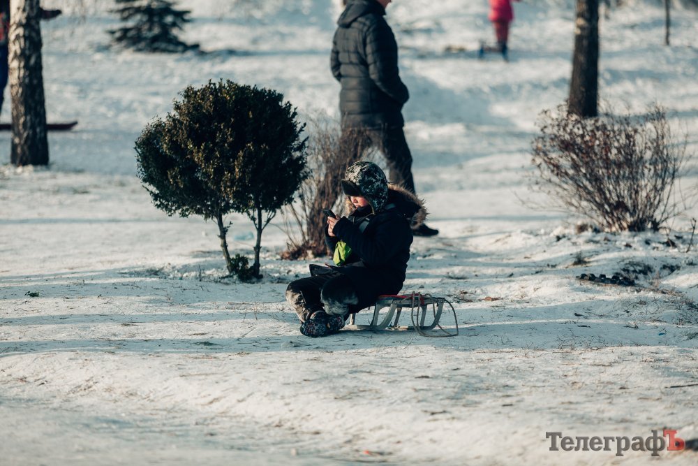 Таких морозів у Кременчуці давно не було. На вулиці якраз випала достатня кількість снігу, і температура поки радує позначками нижче нуля. Погода дозволила дітлахам та дорослим досхочу покататися з гірок. В хід йшли санчата, пакети, надувні «бублики»…