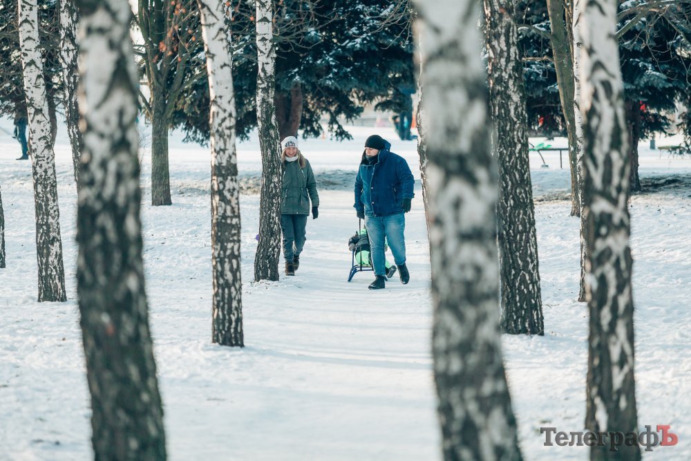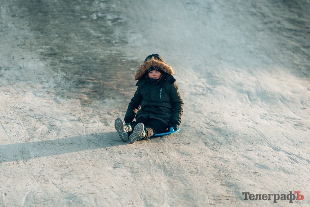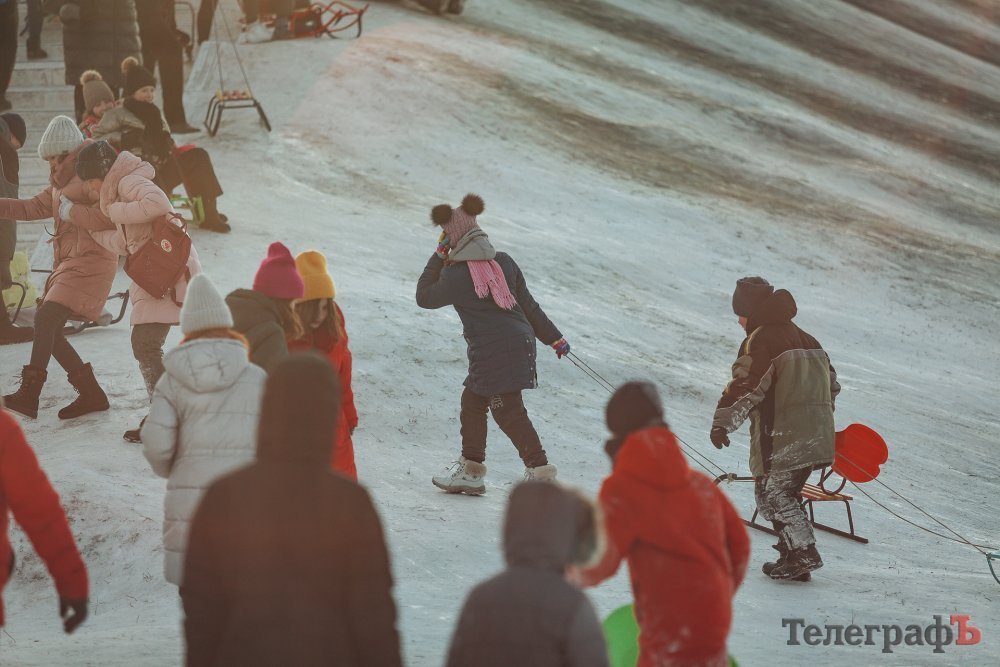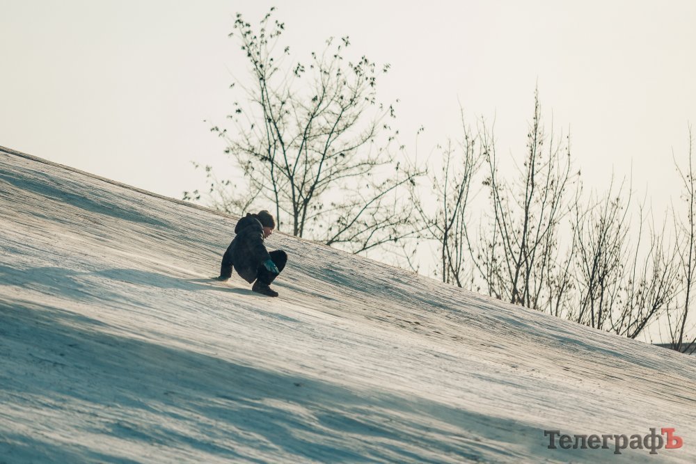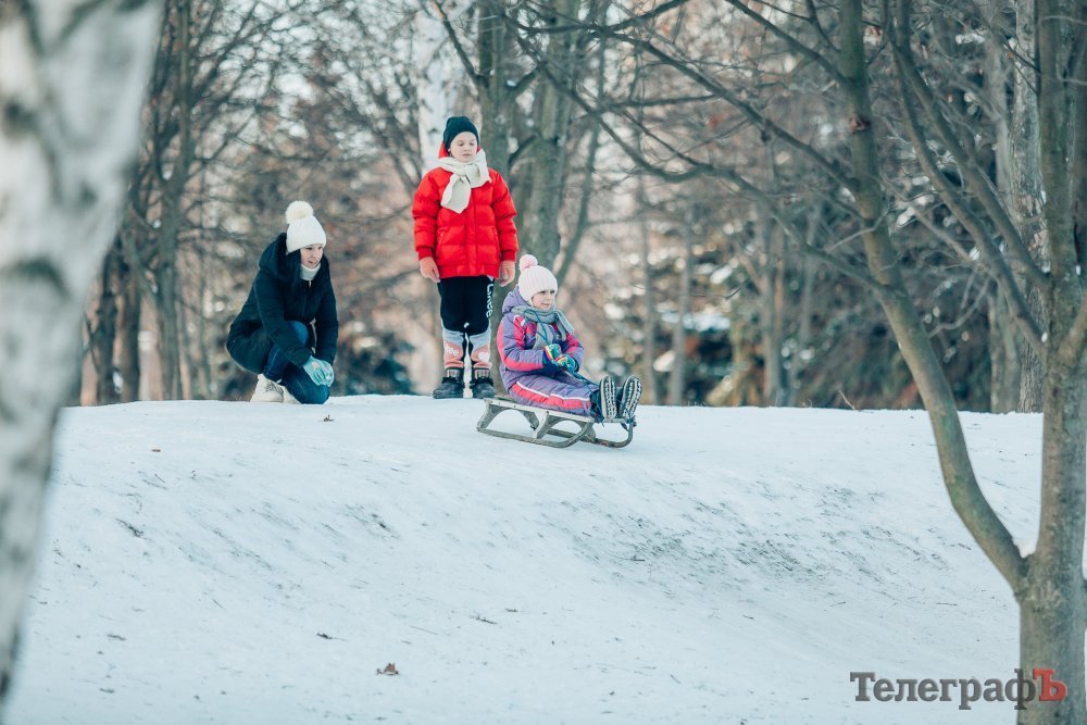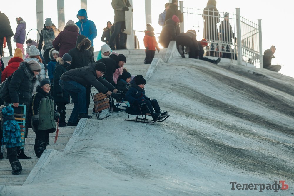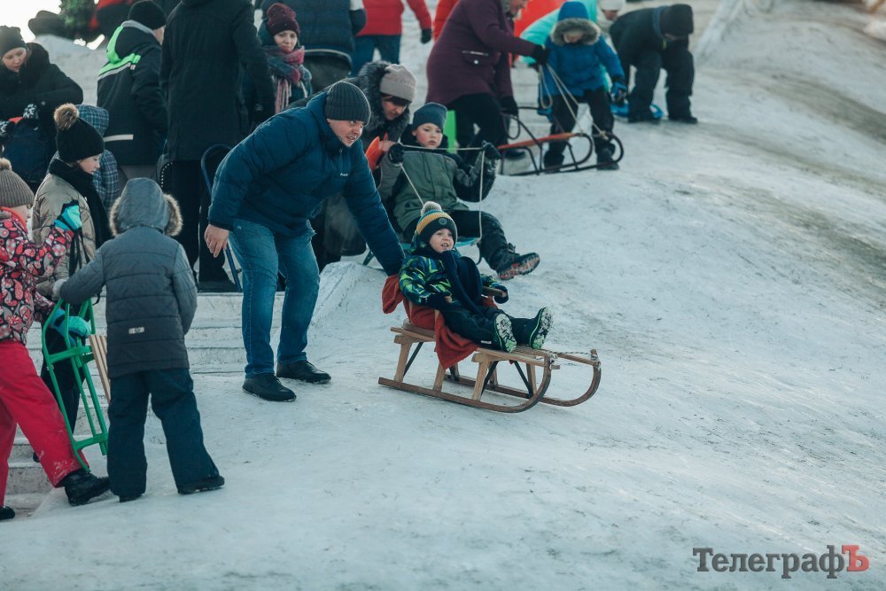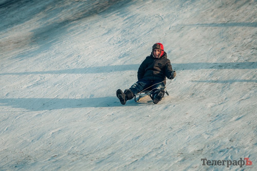 Таких морозів у Кременчуці давно не було. На вулиці якраз випала достатня кількість снігу, і температура поки радує позначками нижче нуля. Погода дозволила дітлахам та дорослим досхочу покататися з гірок. В хід йшли санчата, пакети, надувні «бублики»…