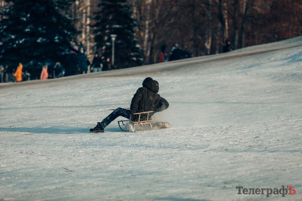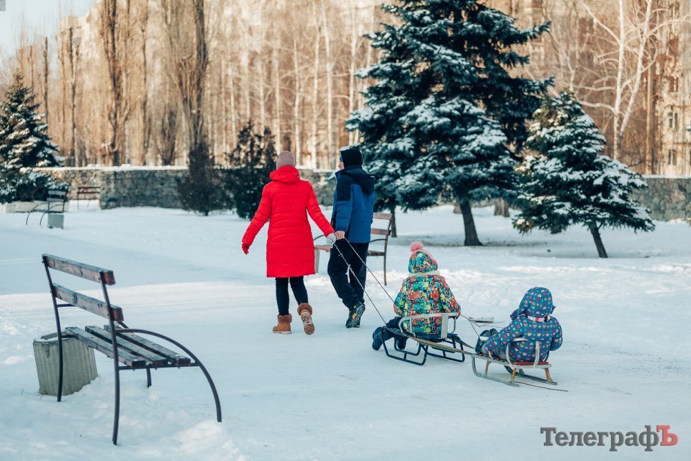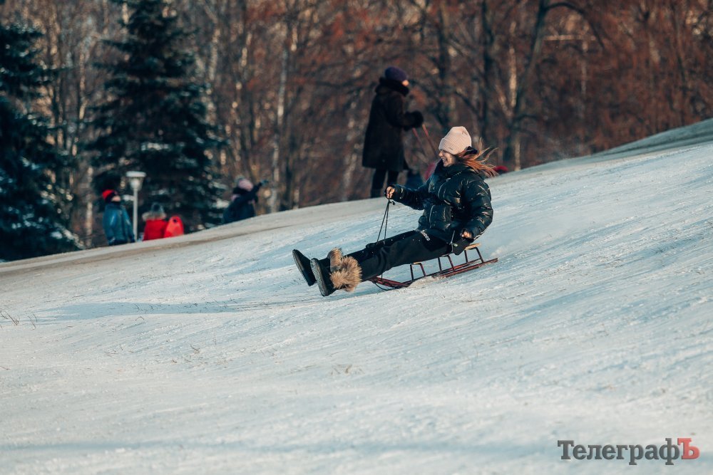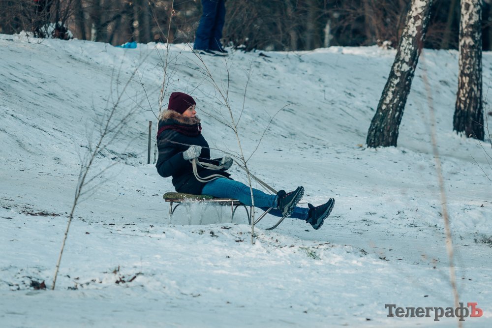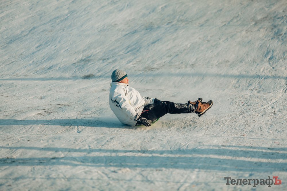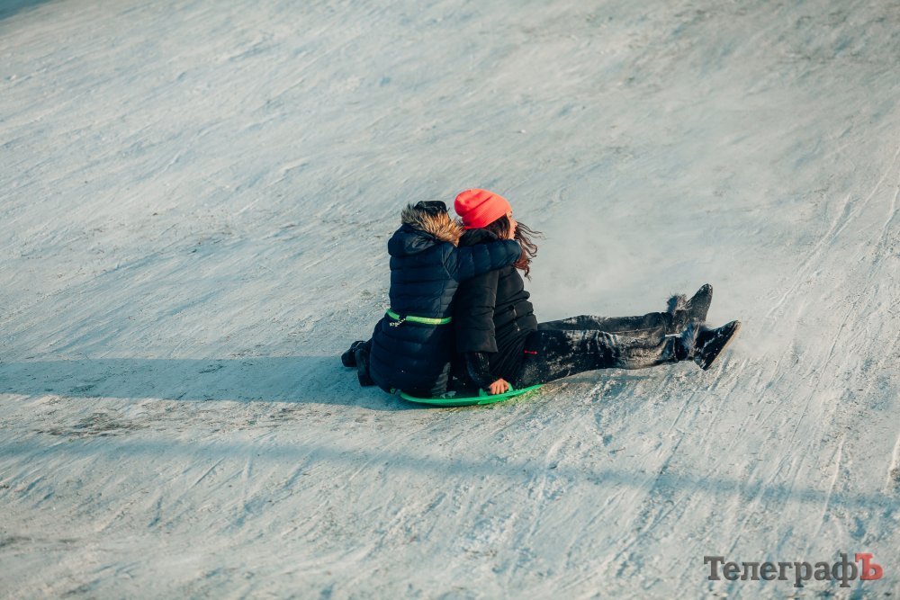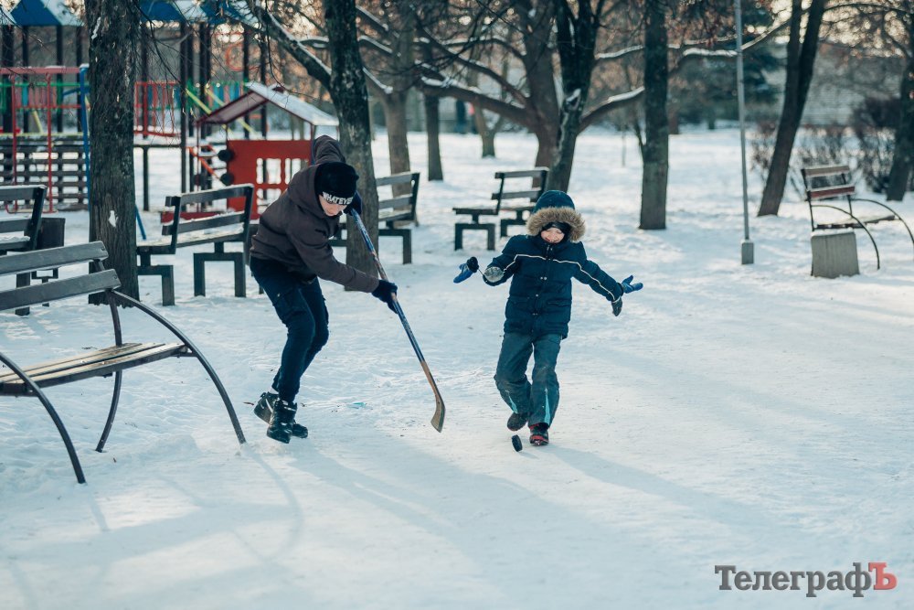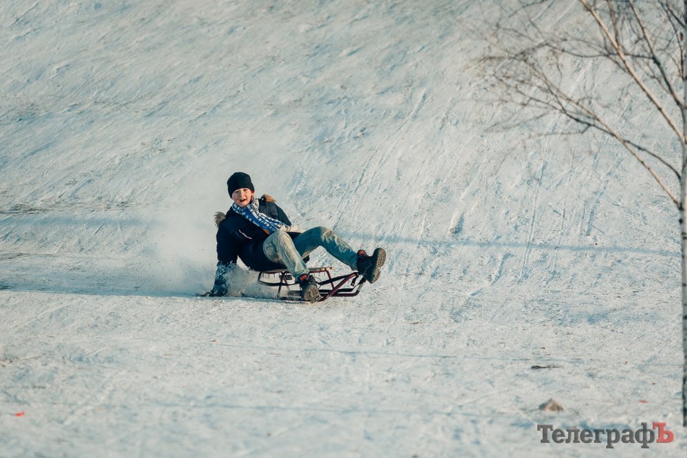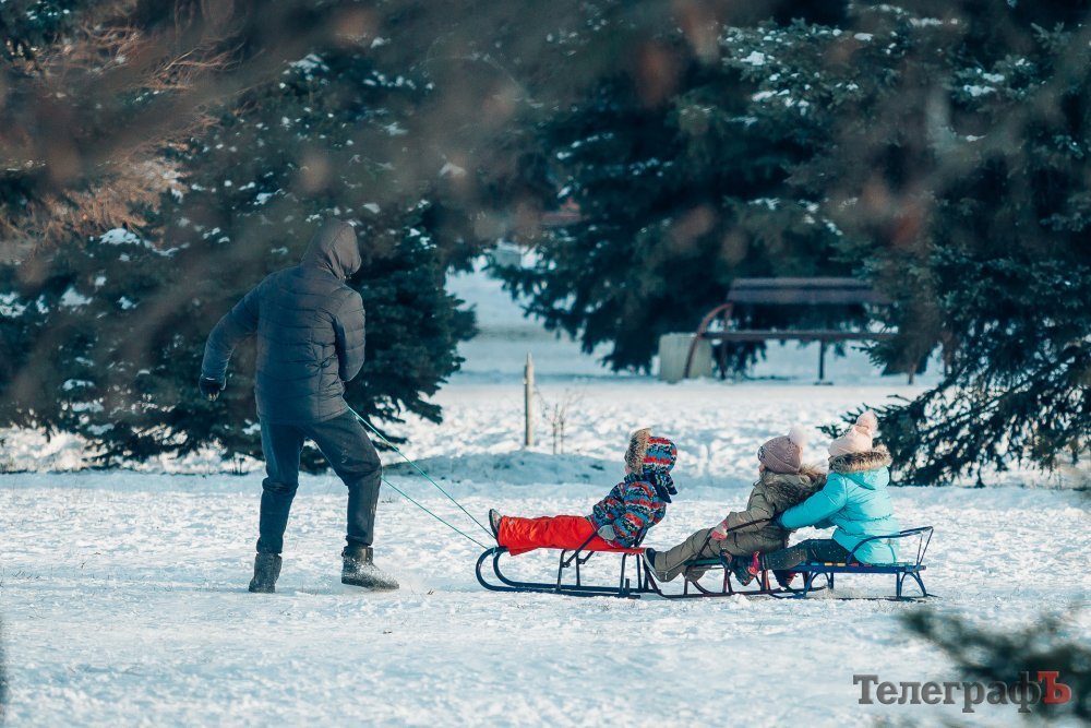 Таких морозів у Кременчуці давно не було. На вулиці якраз випала достатня кількість снігу, і температура поки радує позначками нижче нуля. Погода дозволила дітлахам та дорослим досхочу покататися з гірок. В хід йшли санчата, пакети, надувні «бублики»…