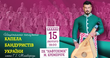 15 лютого до Кременчука завітає Національна заслужена капела бандуристів України імені Г. Майбороди. Про це музиканти повідомили на своїй сторінці у фейсбуці.