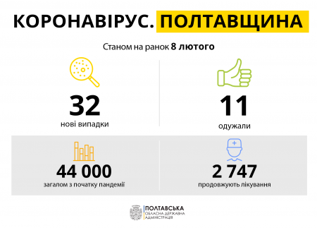 Від початку карантину на Полтавщині діагностували 44 000 випадків захворювання на COVID-19.