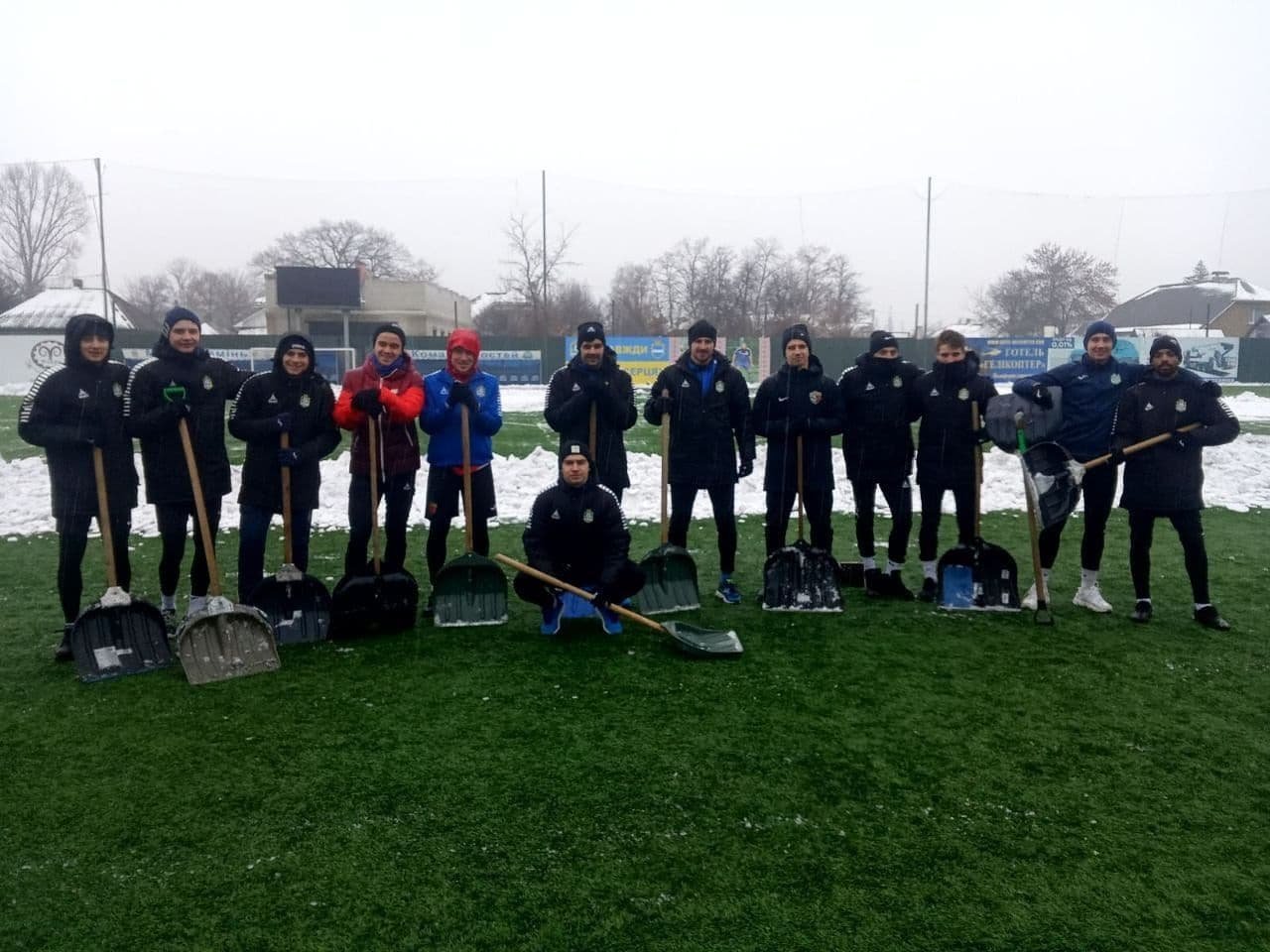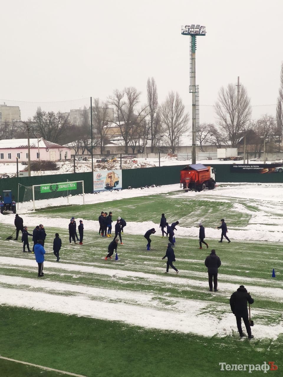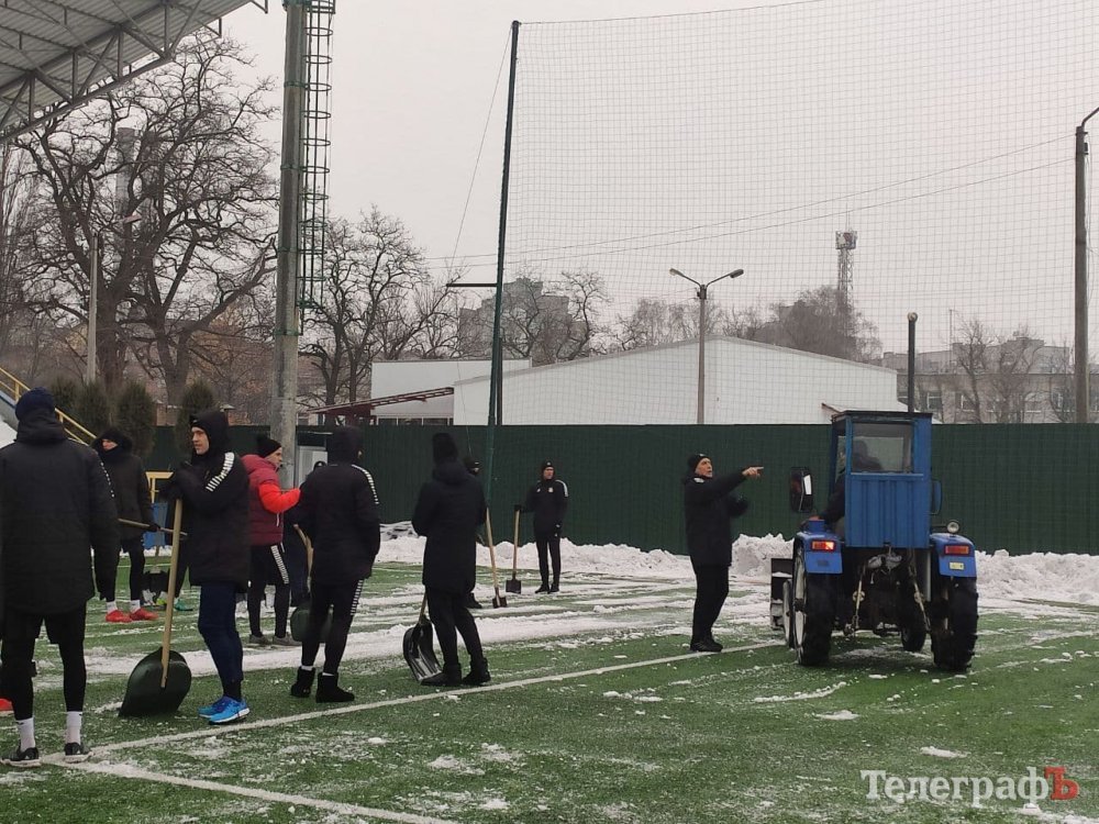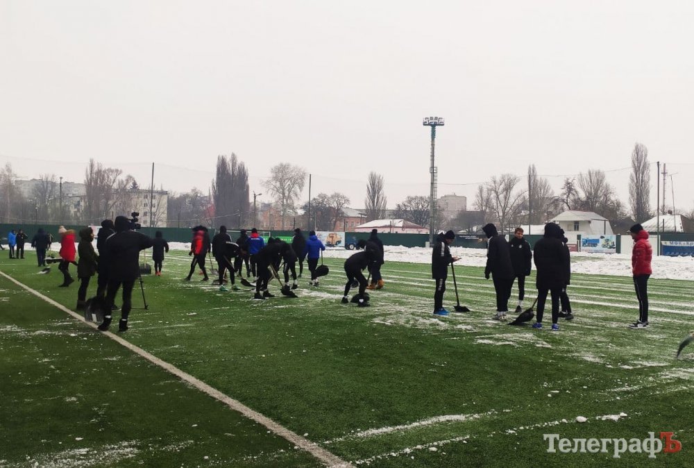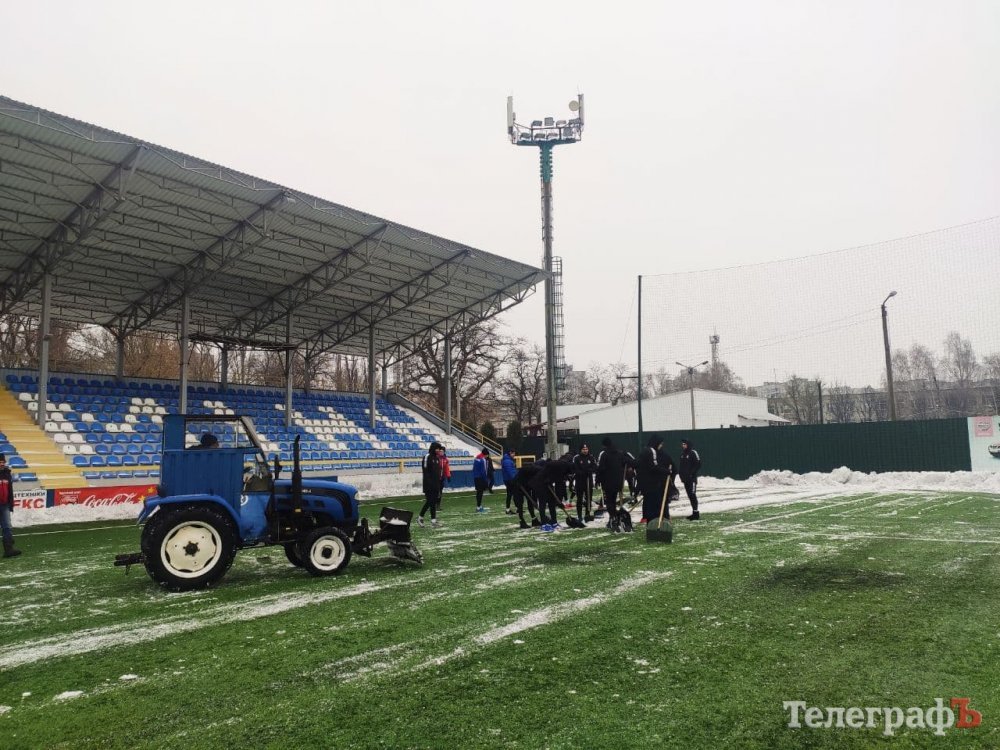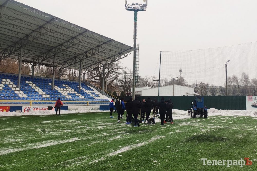 Кілька днів сніг вкривав вулиці Кременчука, не виключенням став і стадіон «Кремінь-Арена». Трибуни й газон покрилися снігом і кіркою льоду. На боротьбу зі стихією підключили важку техніку – комунальну техніку. Осторонь не залишилися адміністративний та тренерський склад Кременя. Лопати до рук взяли й футболісти «Кременя».