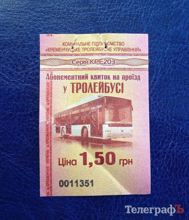 Зазначимо, що минулі квитки були сливово-гранатового кольору із тролейбусом «Я люблю Кременчук».