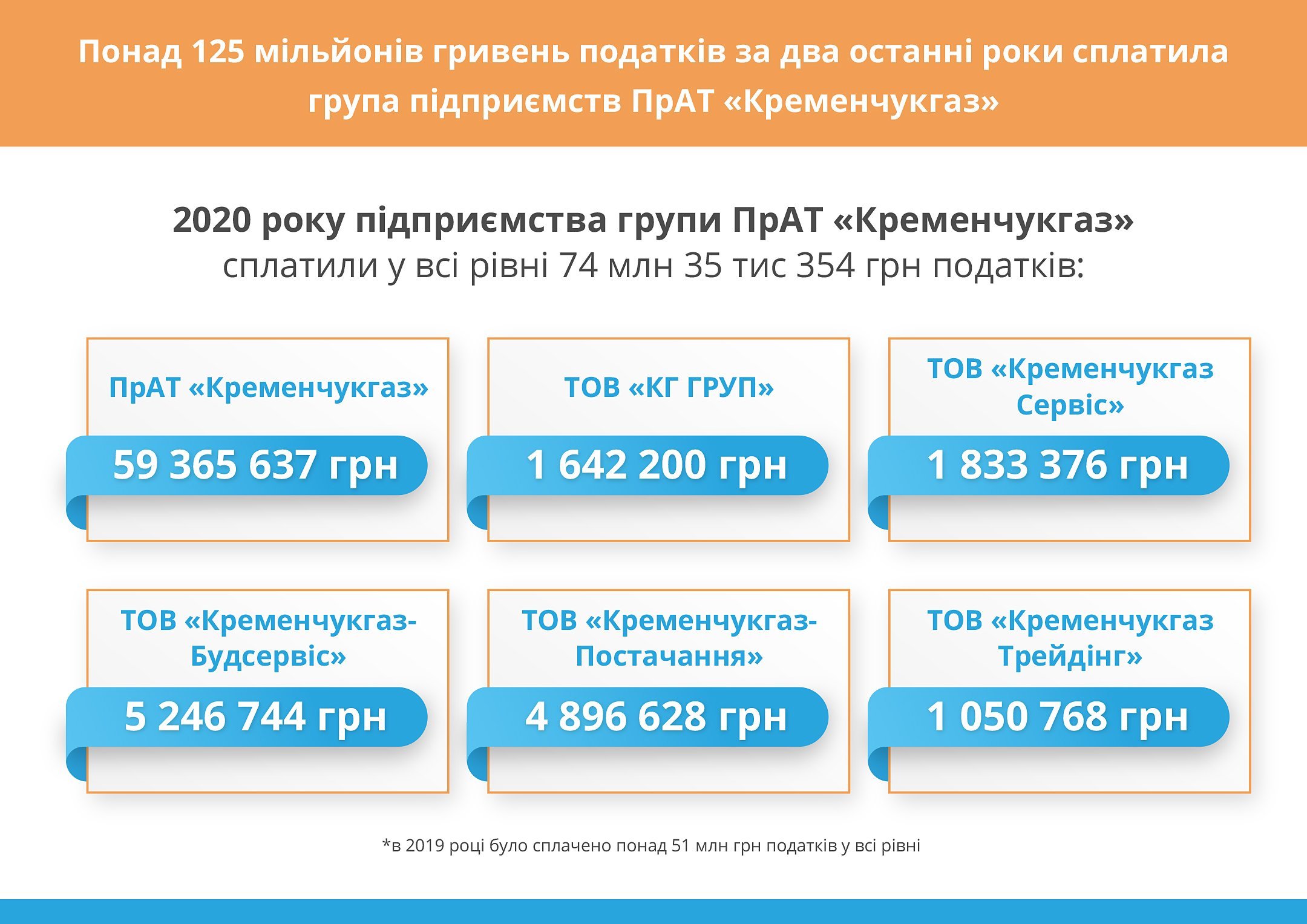 А за два останні роки група компаній «Кременчукгаз» сплатила понад 125 мільйонів гривень податків.